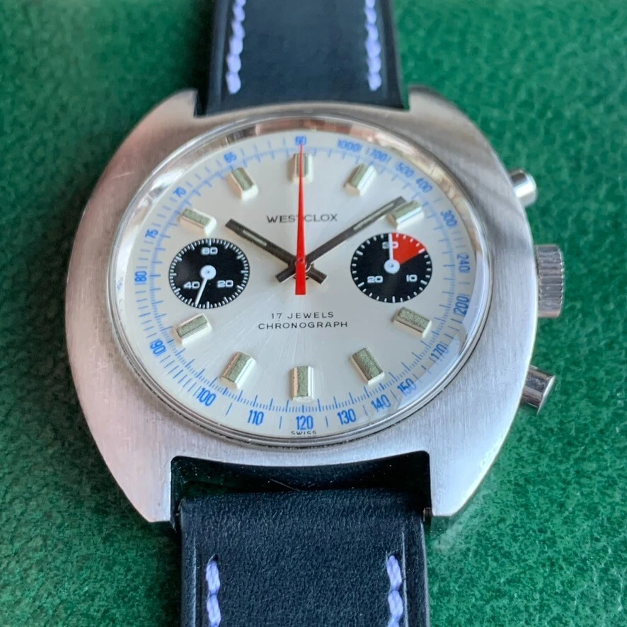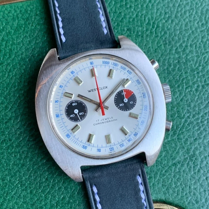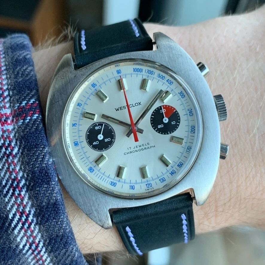 Vintage Westclox Jumbo 40mm Panda Dial Valjoux 7733 Stainless Steel Chronograph