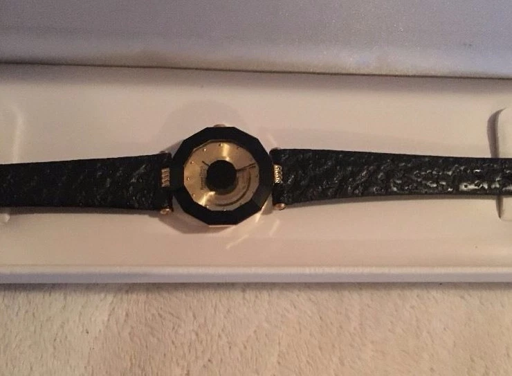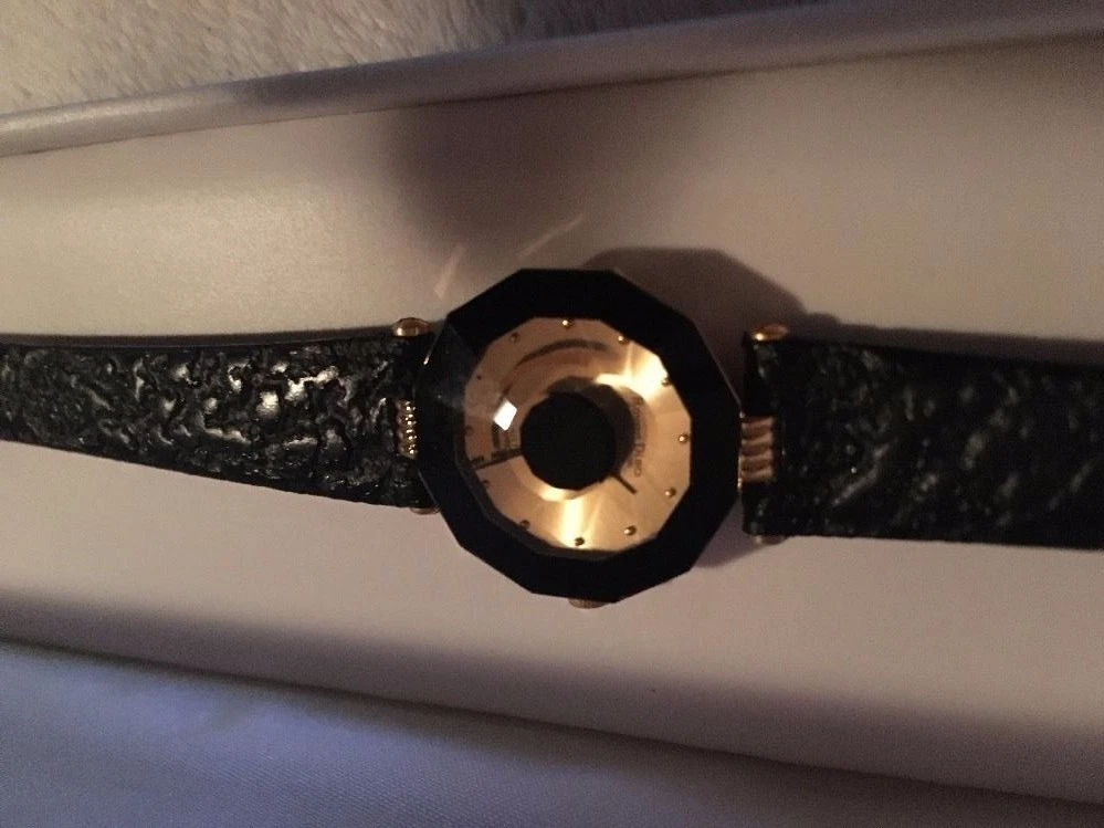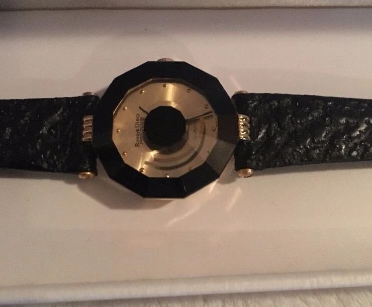 ROVEN DINO YELLOW BASE METAL SAPPHIRE CRYSTAL LEATHER QUARTZ WATCH LIII NEW