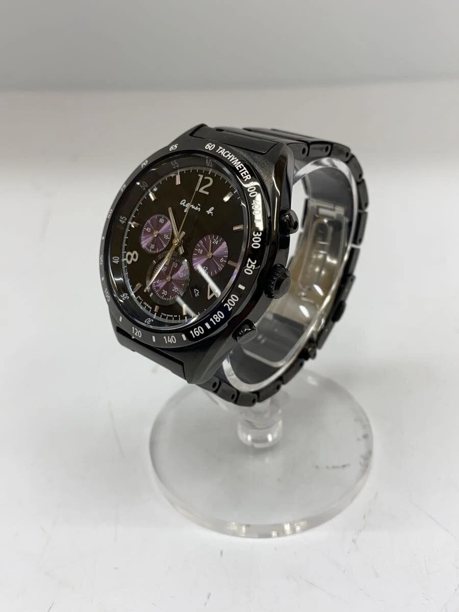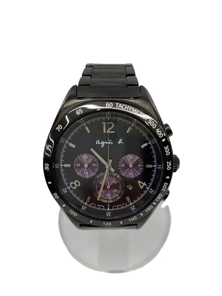 agnes b. 7t12-0ap0 Quartz Analog Black Stainless Steel Excellent JAPAN