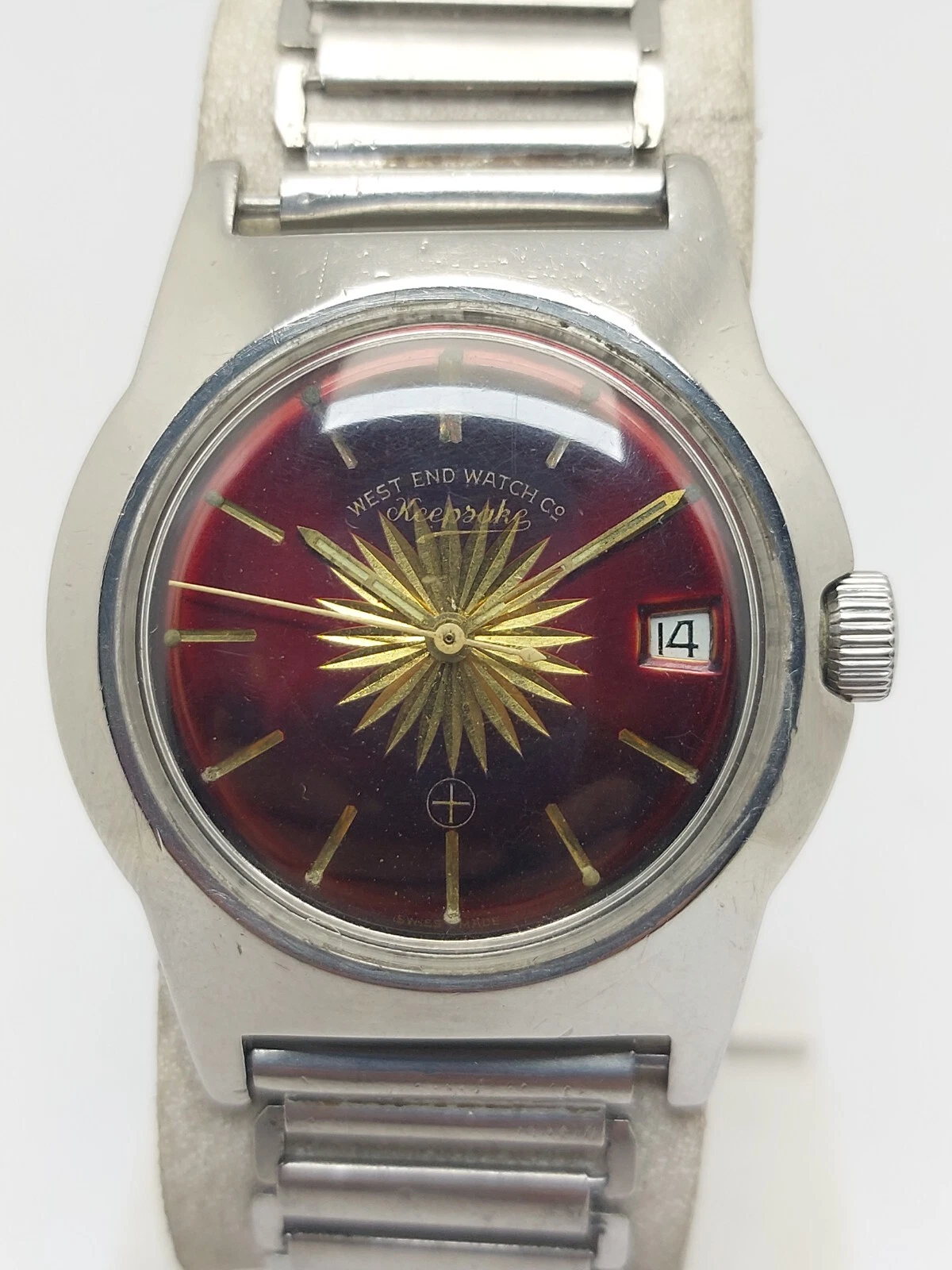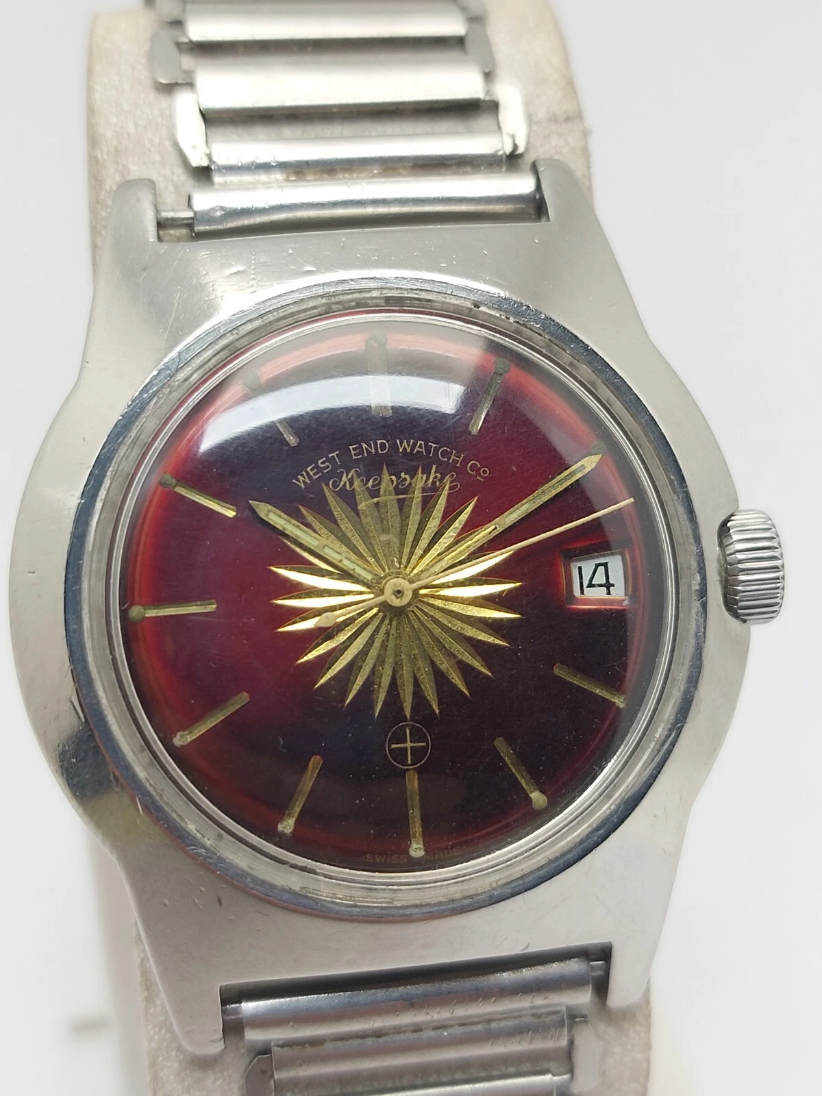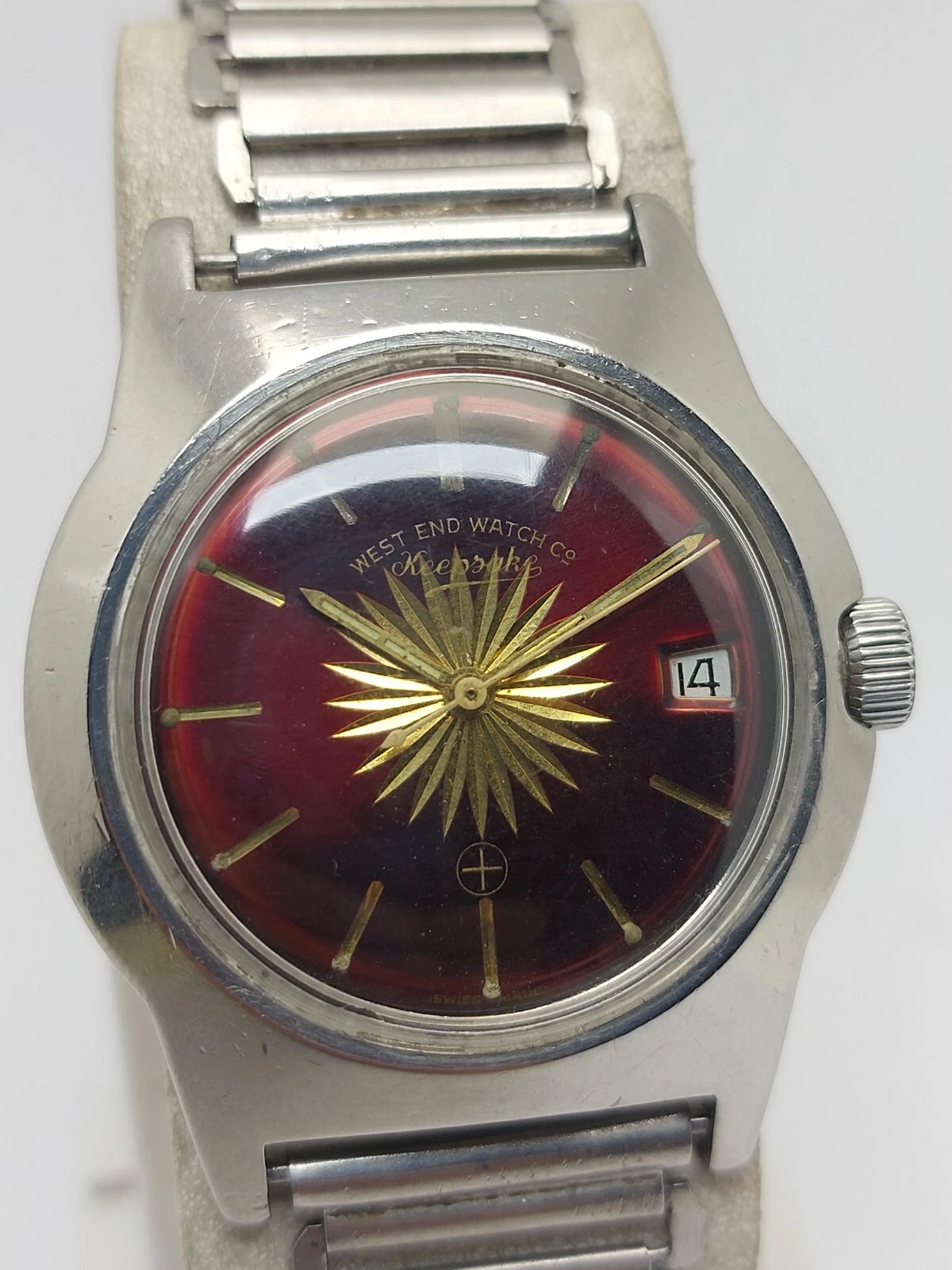 Big Size Military West End Watch Sun Burst Maroon Dial Vintage Hand Wind 36mm