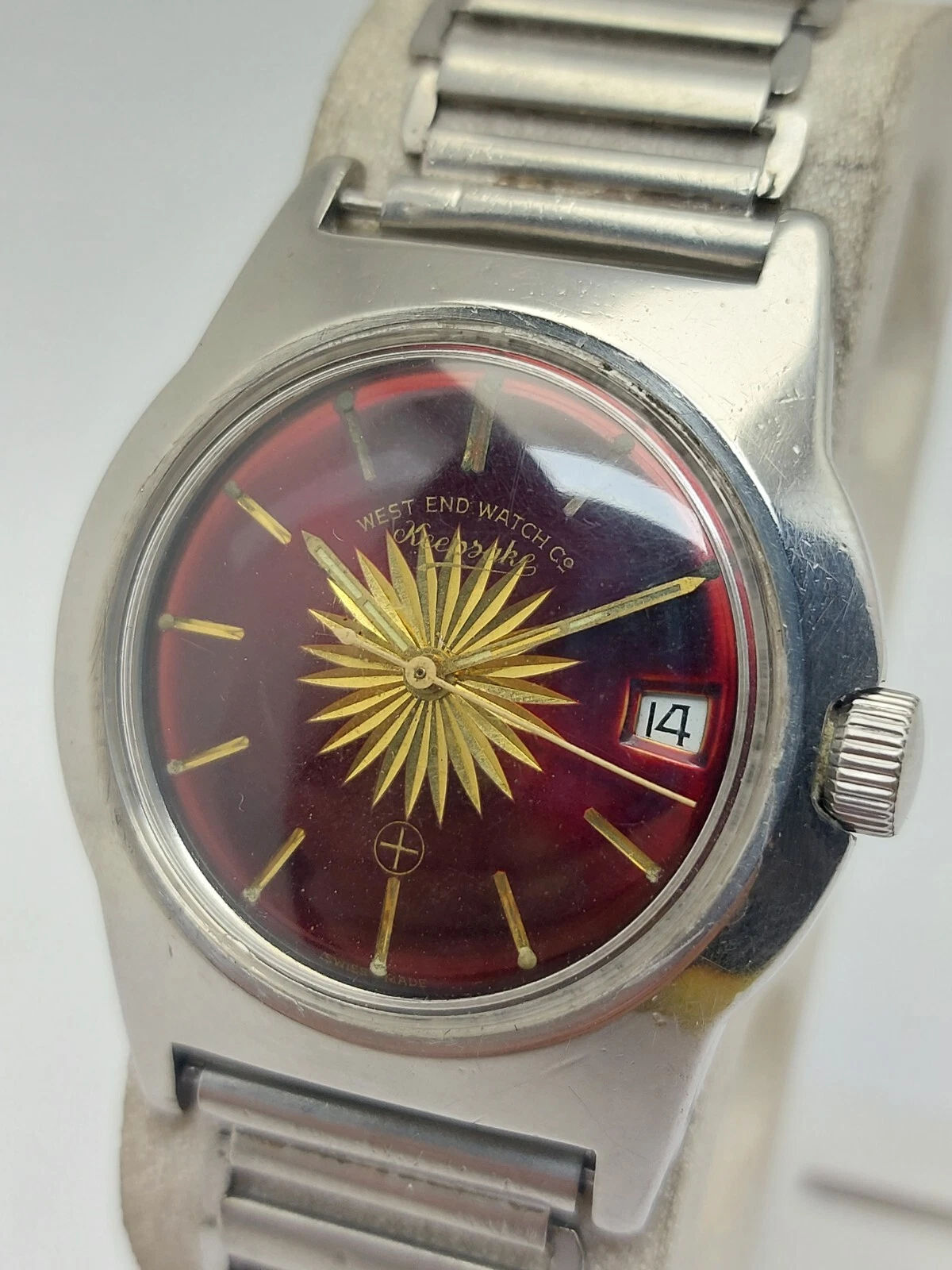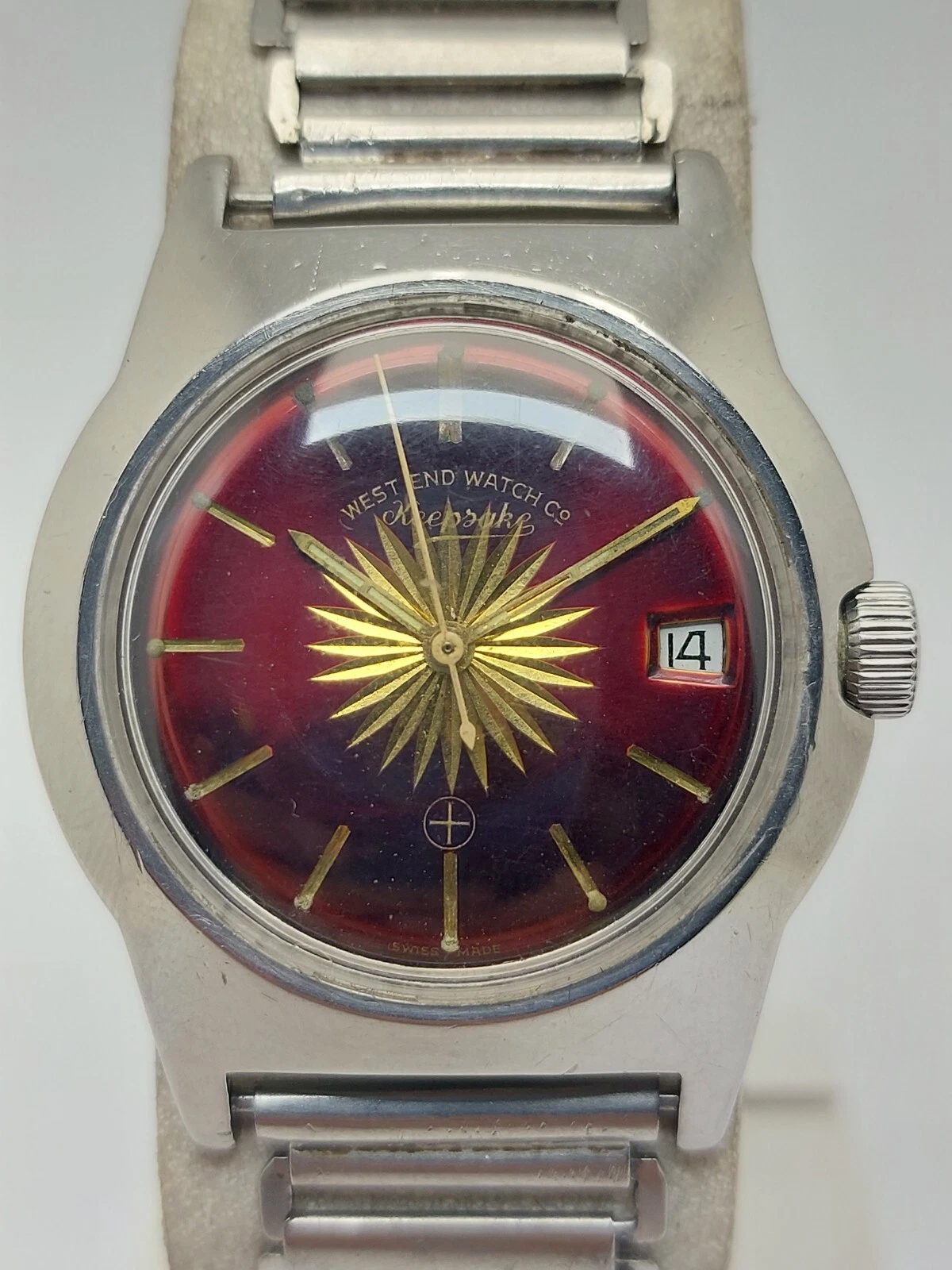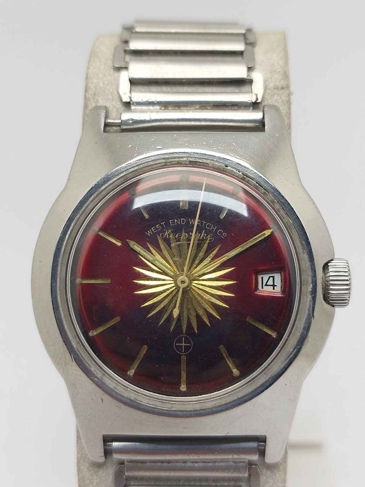 Big Size Military West End Watch Sun Burst Maroon Dial Vintage Hand Wind 36mm