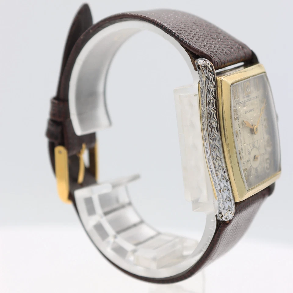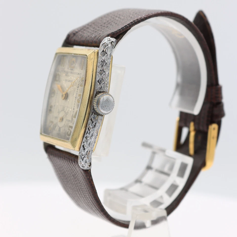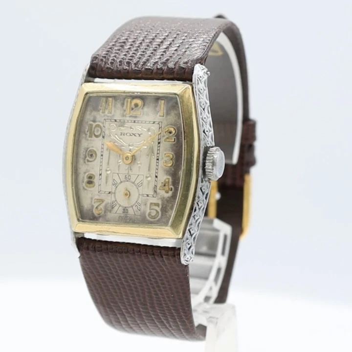Vintage Roxy Art Deco Two Tone Men's Mechanical Wristwatch 14k GF & White GF