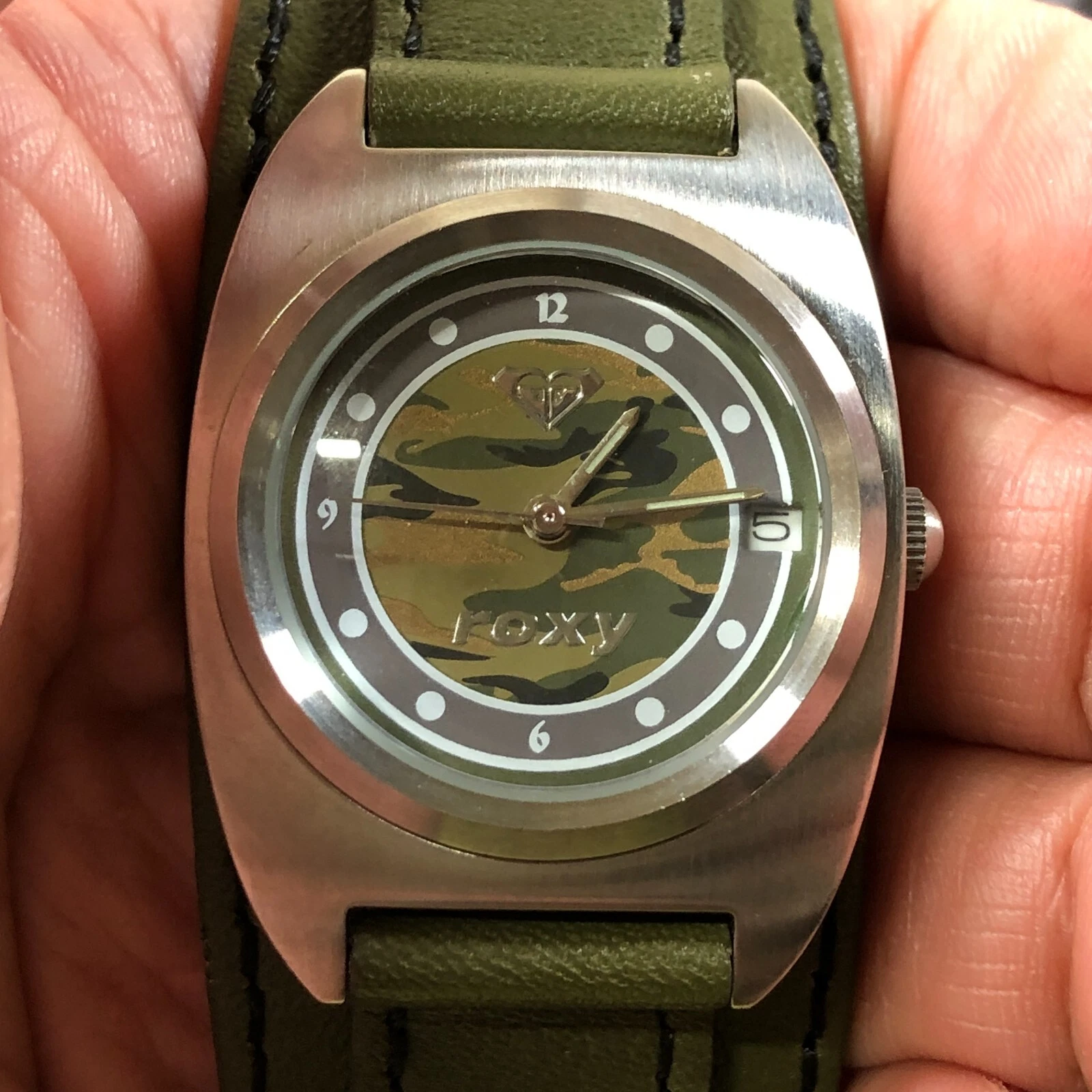 Roxy by Nixon Women T40314 Camouflage Dial 30mm Green Leather Quartz  Watch 7"