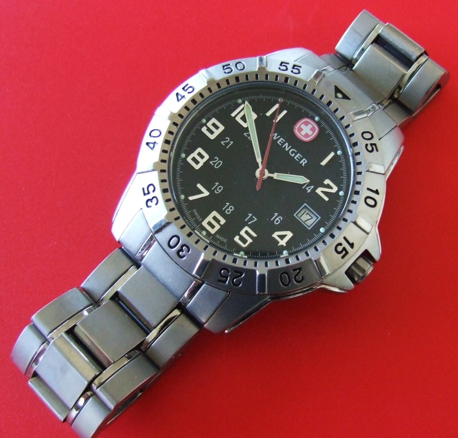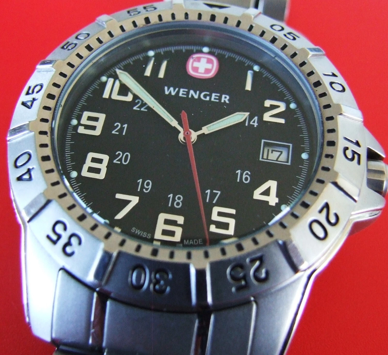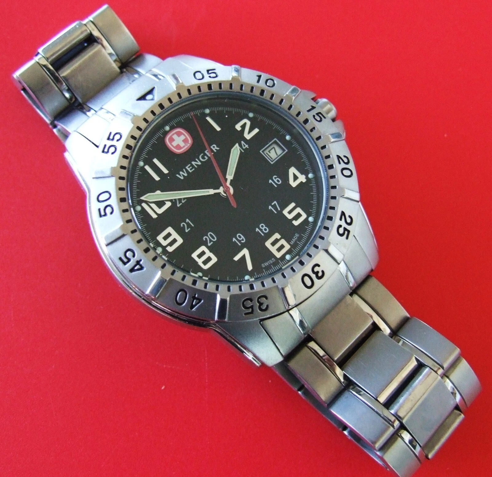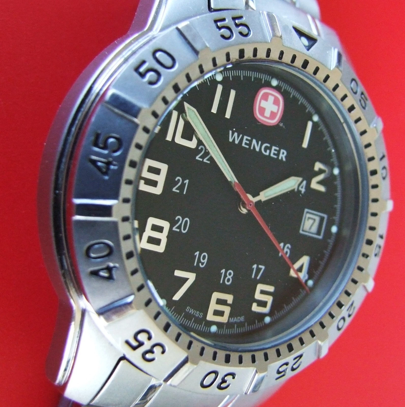 Men's WENGER Swiss Army ALL TITANIUM MOUNTAINEER~42mm~Ratchet Bezel~Ti Bracelet
