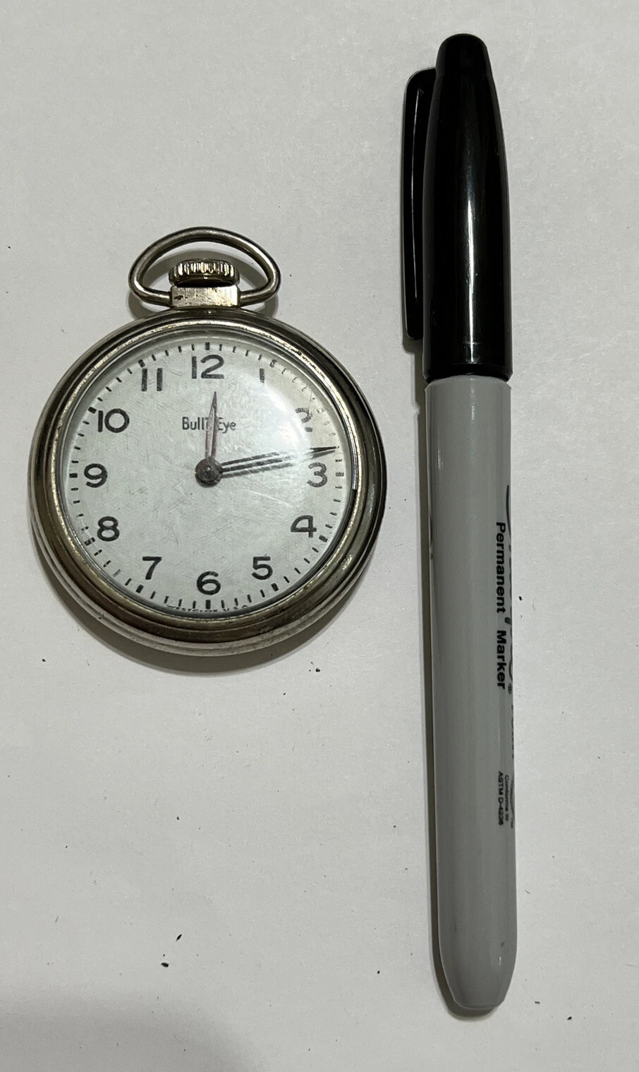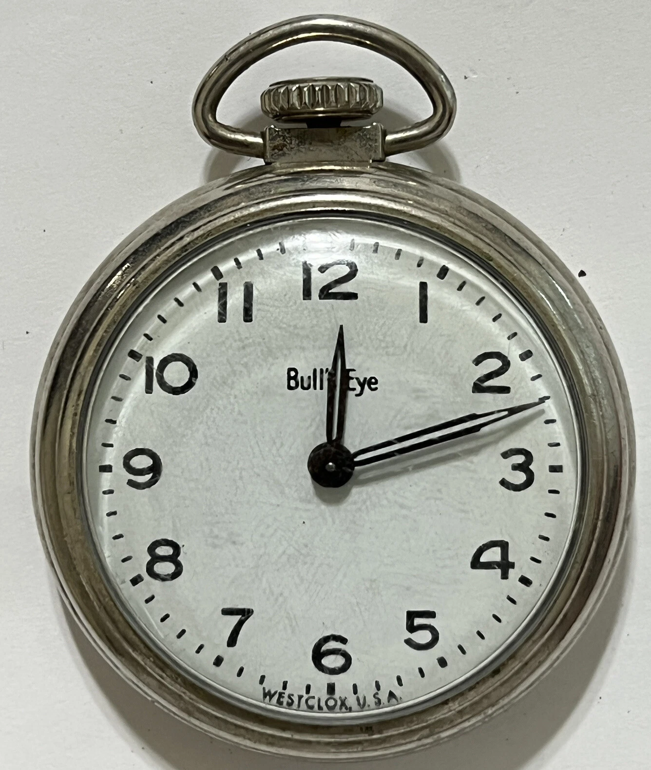 VINTAGE BULL'S EYE PENDANT POCKET WESTCLOX USA MECHANICAL WATCH WORKS GREAT