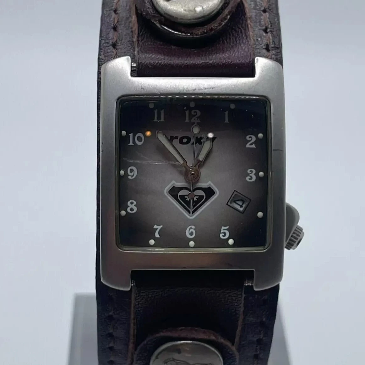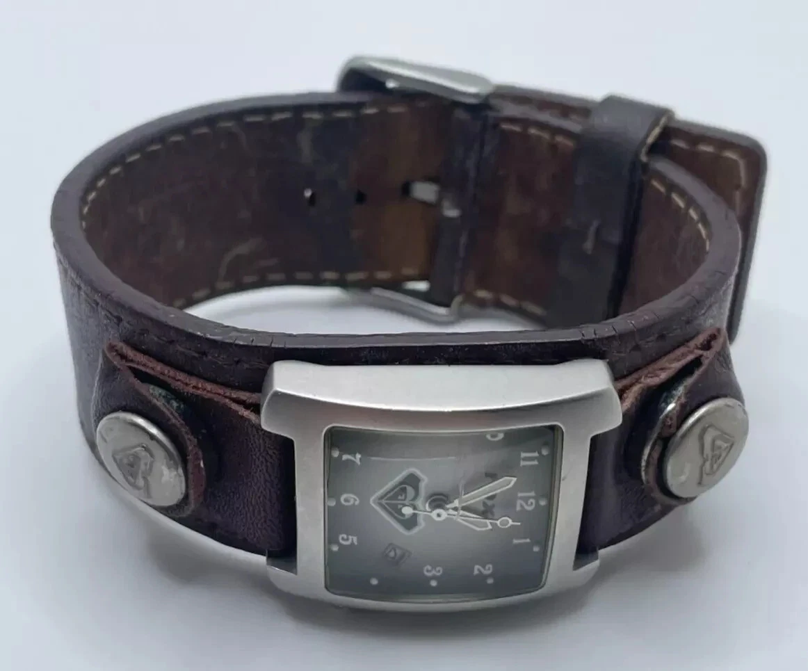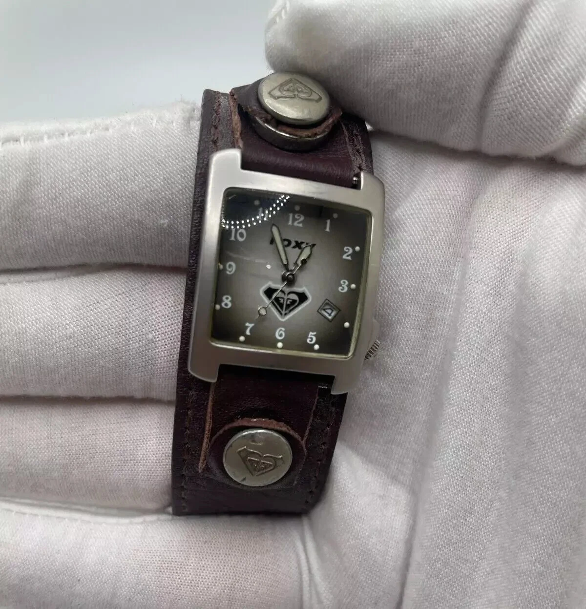 Roxy Womens Watch Date Brown Leather Bund Strap 24mm Case Quartz Three Hands