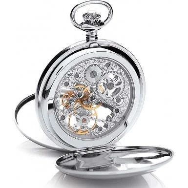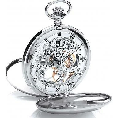 ROYAL LONDON 90028-01 Pocket Watch Jewelled Mechanical Skeleton Double Hunter