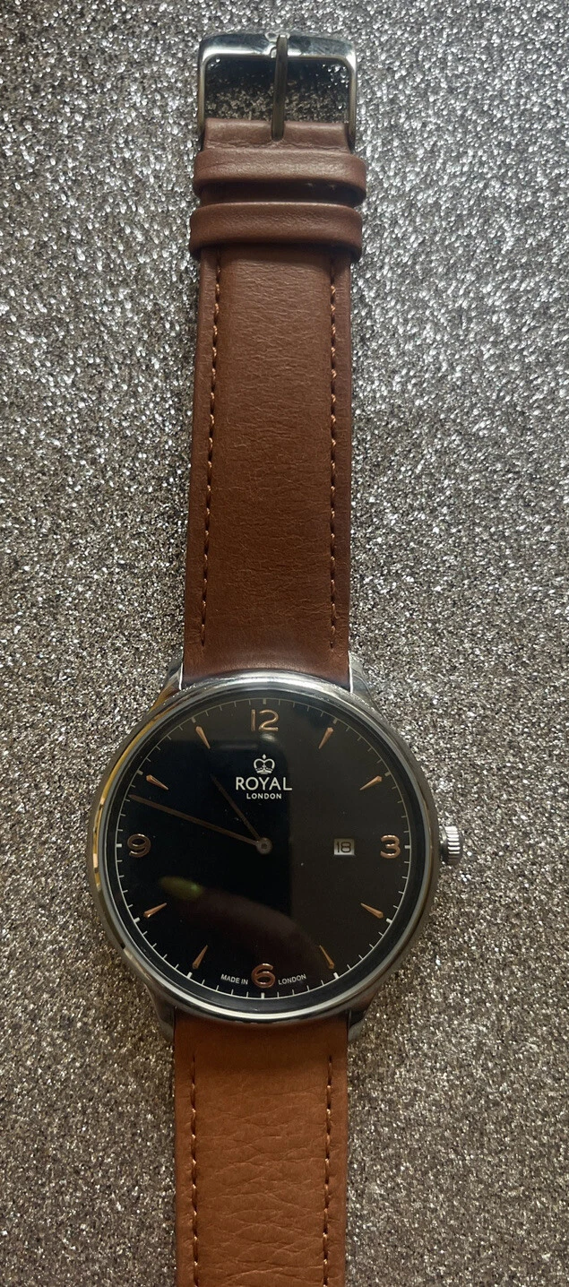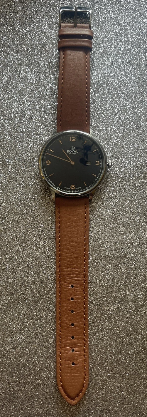 Royal London The N10 Mens WristWatch Leather Brown Strap Blue Face Silver Rim