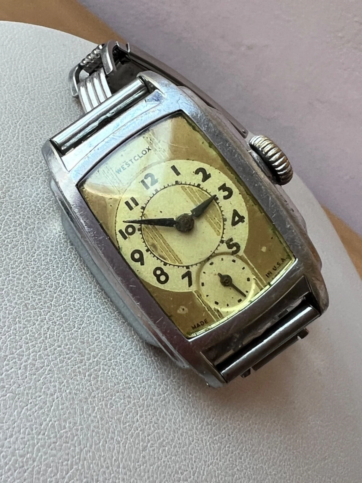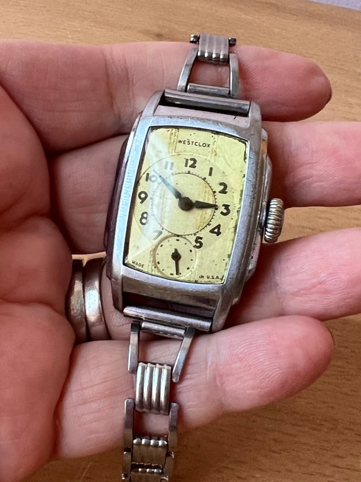 WESTCLOX 1936 Mens Original Classic WRIST BEN Silver Tank Watch made USA AS IS