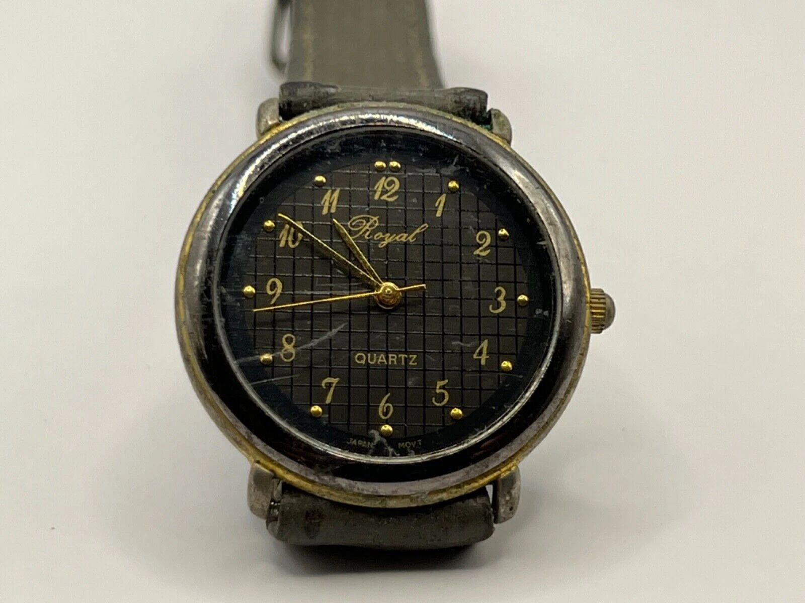 Vintage Royal Black Quartz Not Working For Parts Accessories Wristwatch Watch