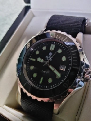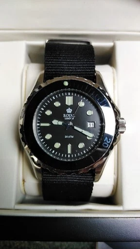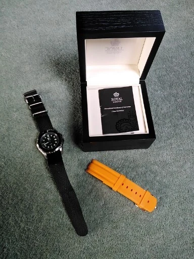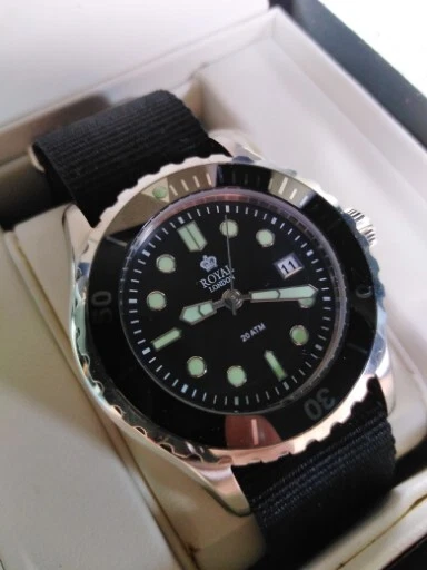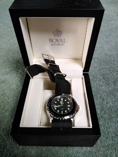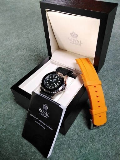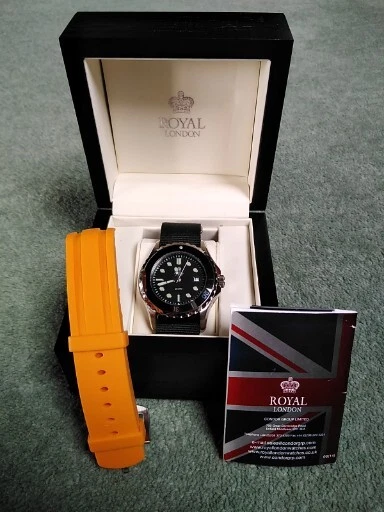 ROYAL LONDON 20 ATM 200M diving watch. Orange + NATO Black Strap. UK Brand. RARE