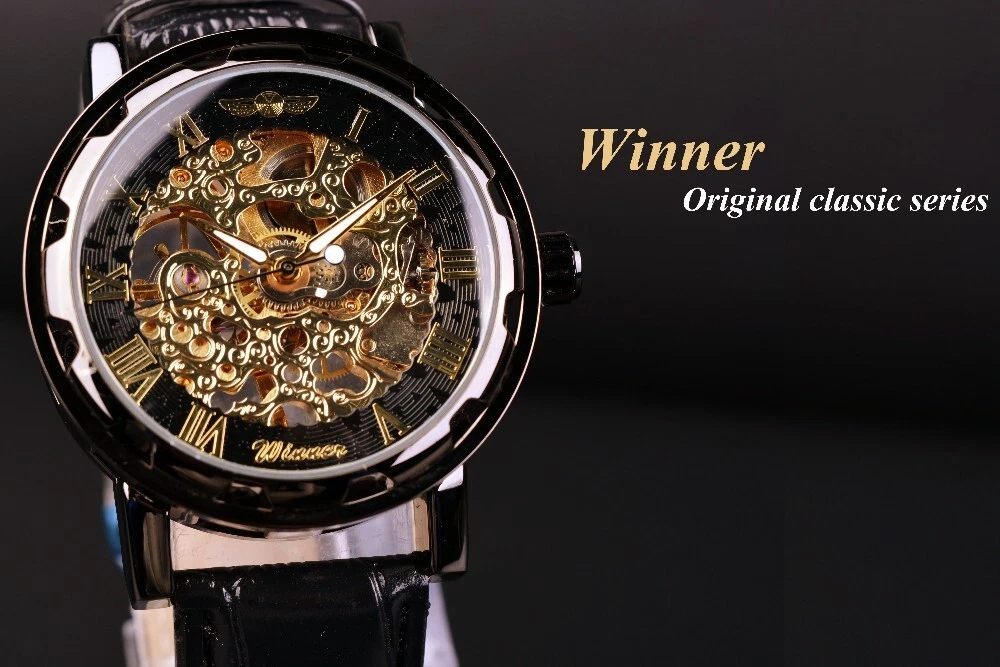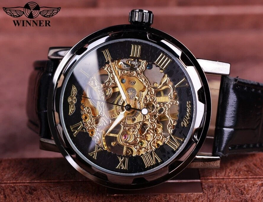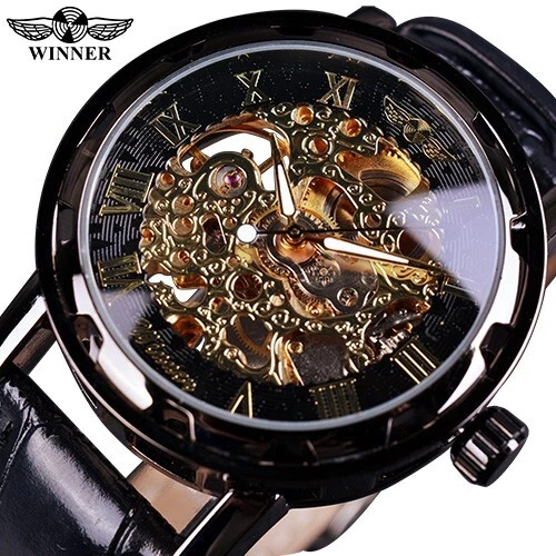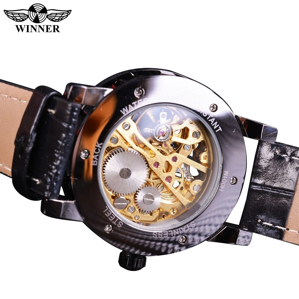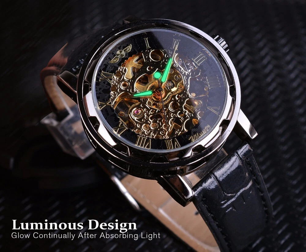 Winner Skeleton Mechanical Automatic Leather Watch Men Waterproof Luminous Diver