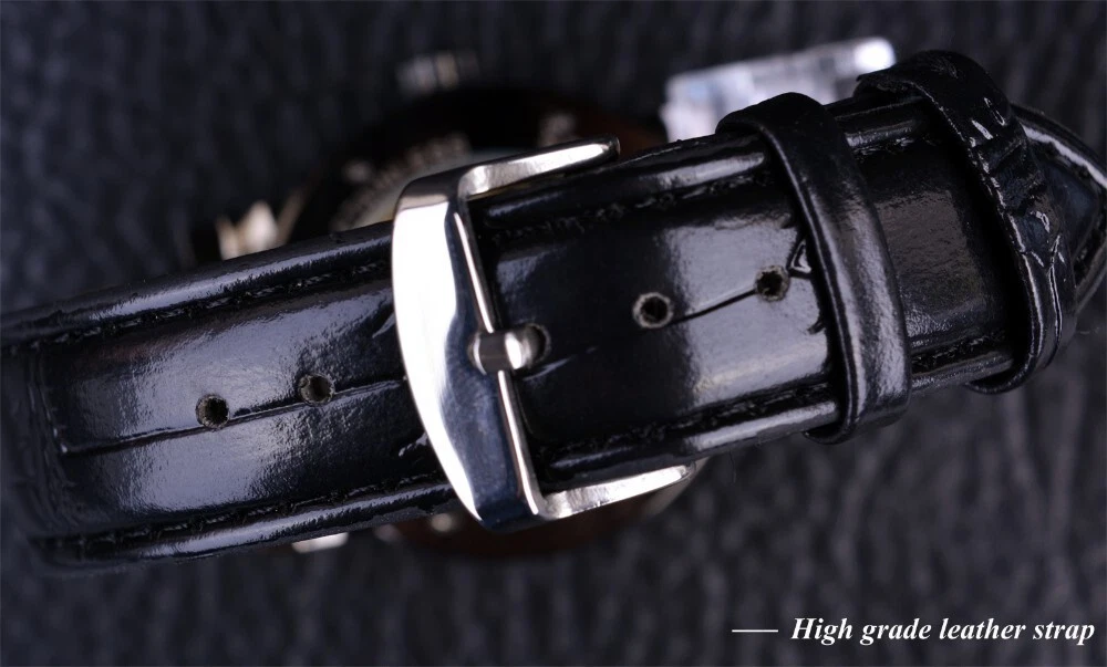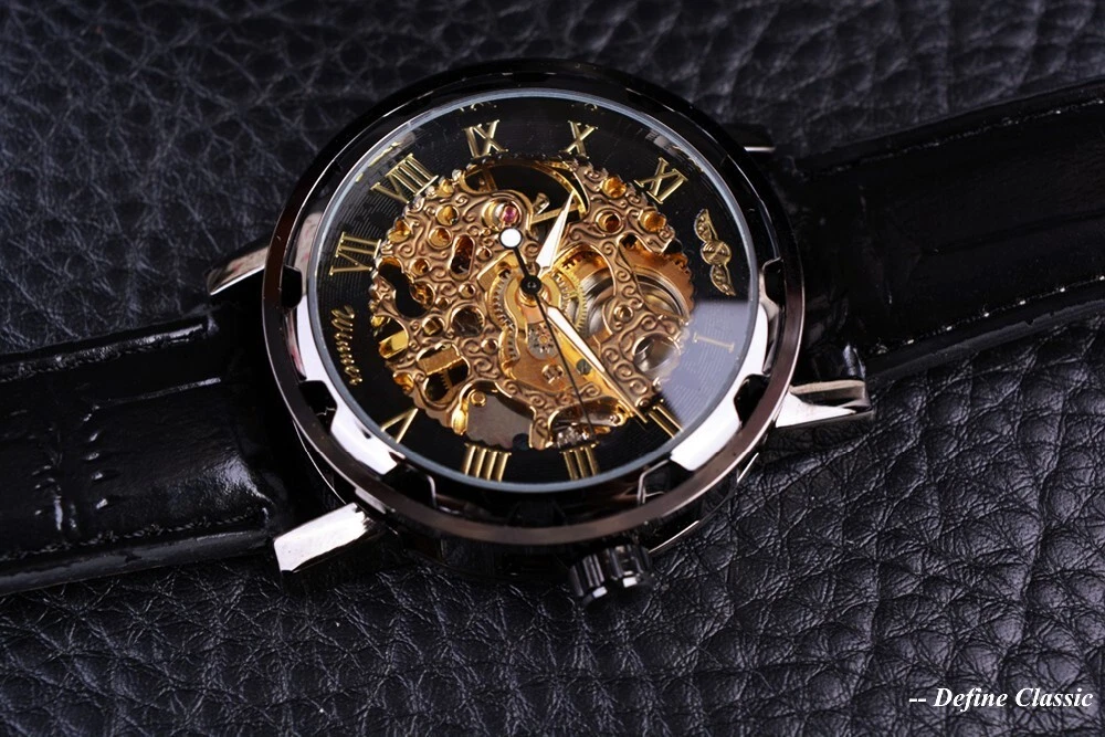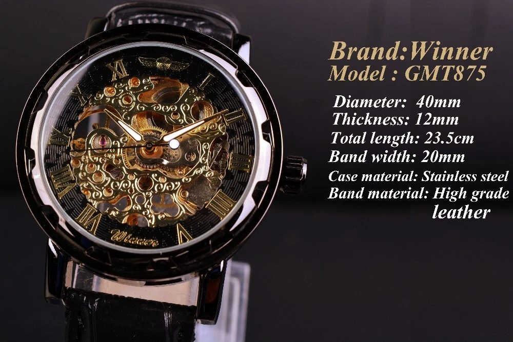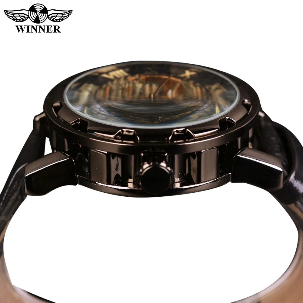 Winner Skeleton Mechanical Automatic Leather Watch Men Waterproof Luminous Diver