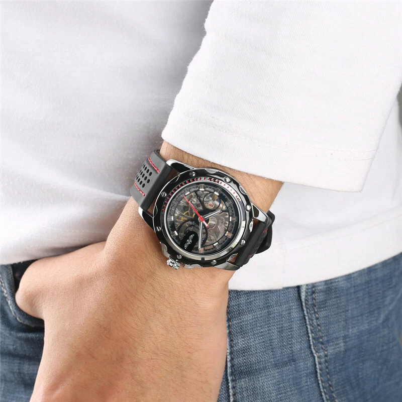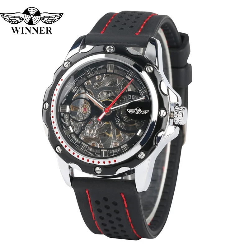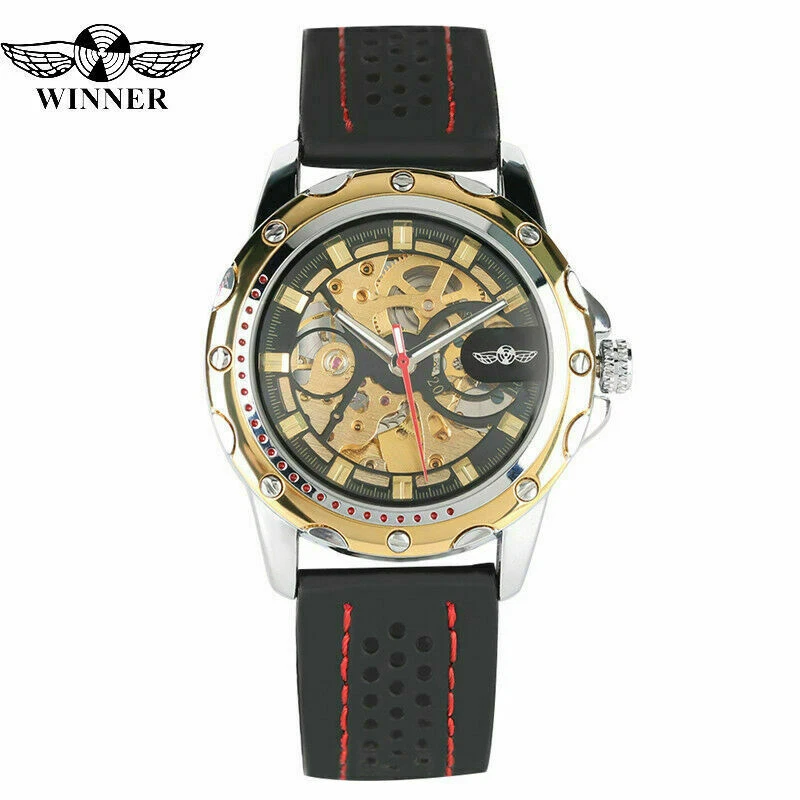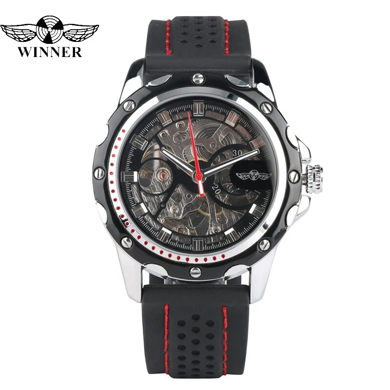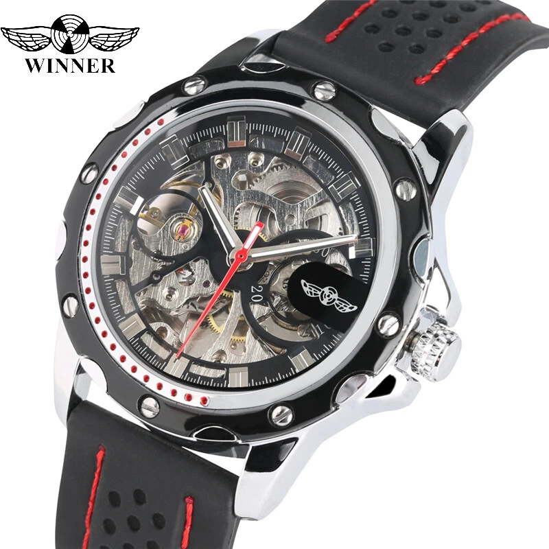 Top WINNER Silicone Band Men's Military Sport Automatic Mechanical Wrist Watches