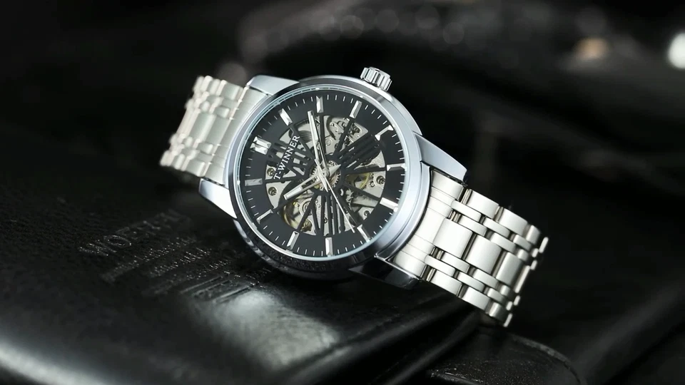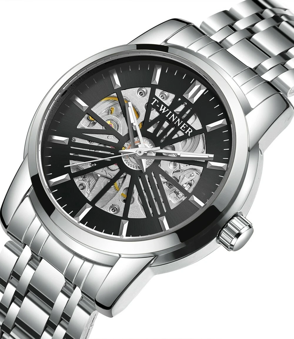 New Arrival Men's Skeleton Self-wind Automatic Mechanical Watch Black