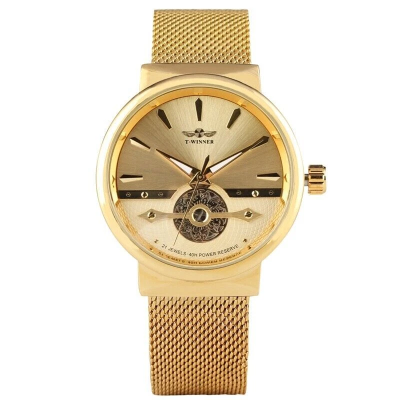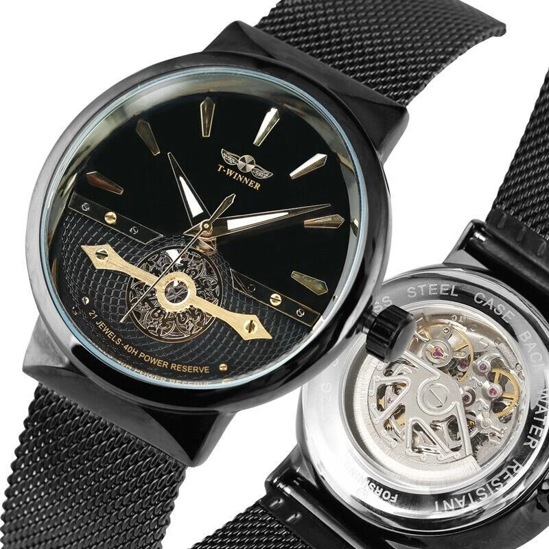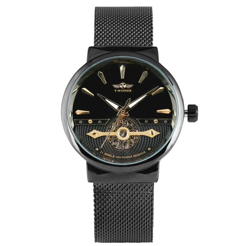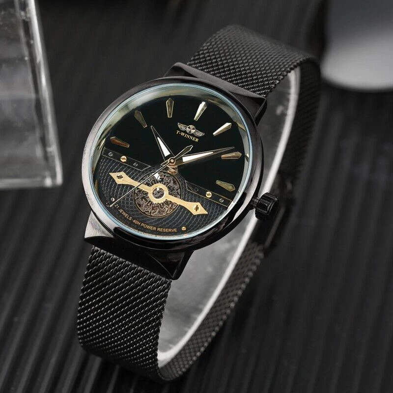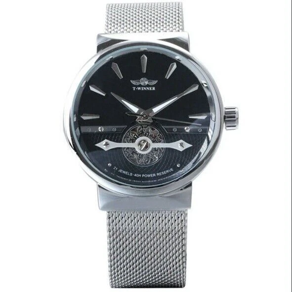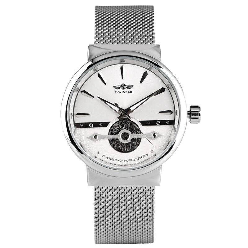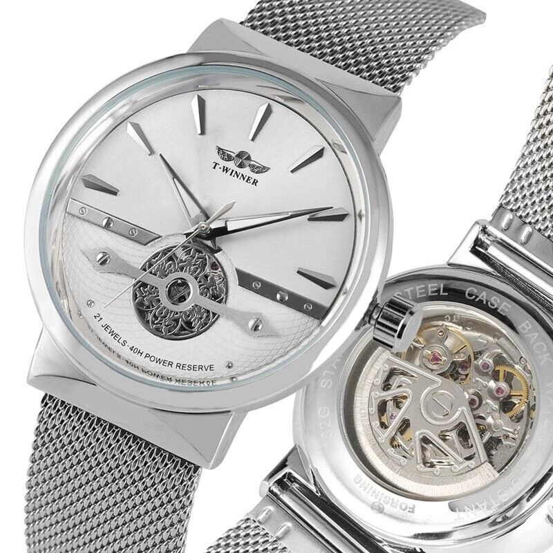 WINNER Mens Mechanical Watch Steel Mesh Milanese Autometic Self Winding Classic