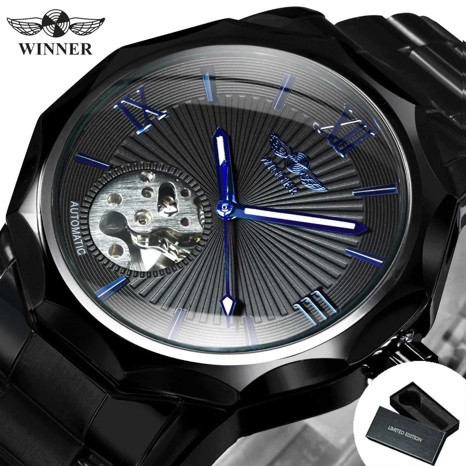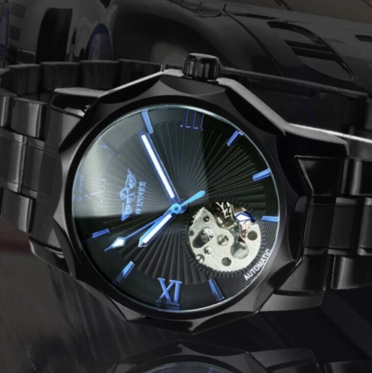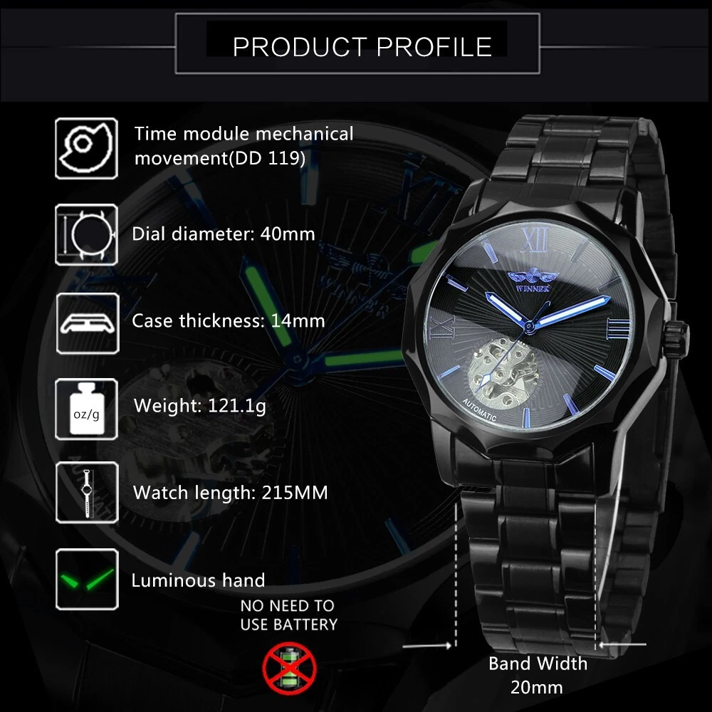 Winner Automatic Mechanical Stainless Watch Waterproof Luminous Date Luxury Dive