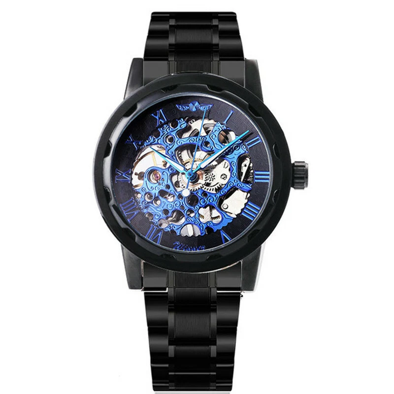 T-WINNER Men's Stainless Steel Mechanical Watches Luxury Retro Hollow Wristwatch