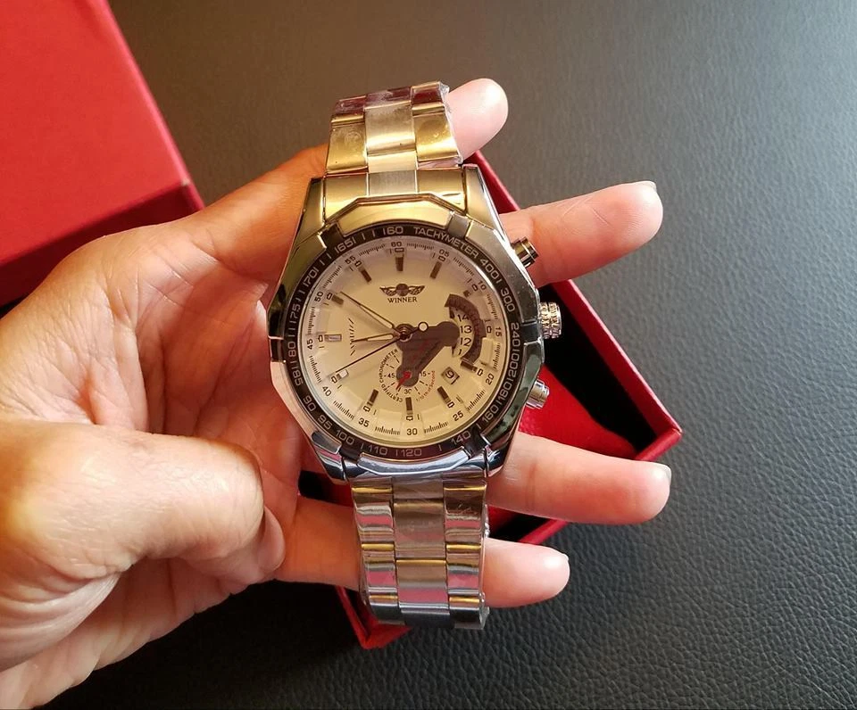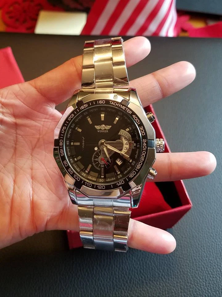 Winner Fashion Brand Stainless Steel Self Wind Automatic Mechanical Men Watch
