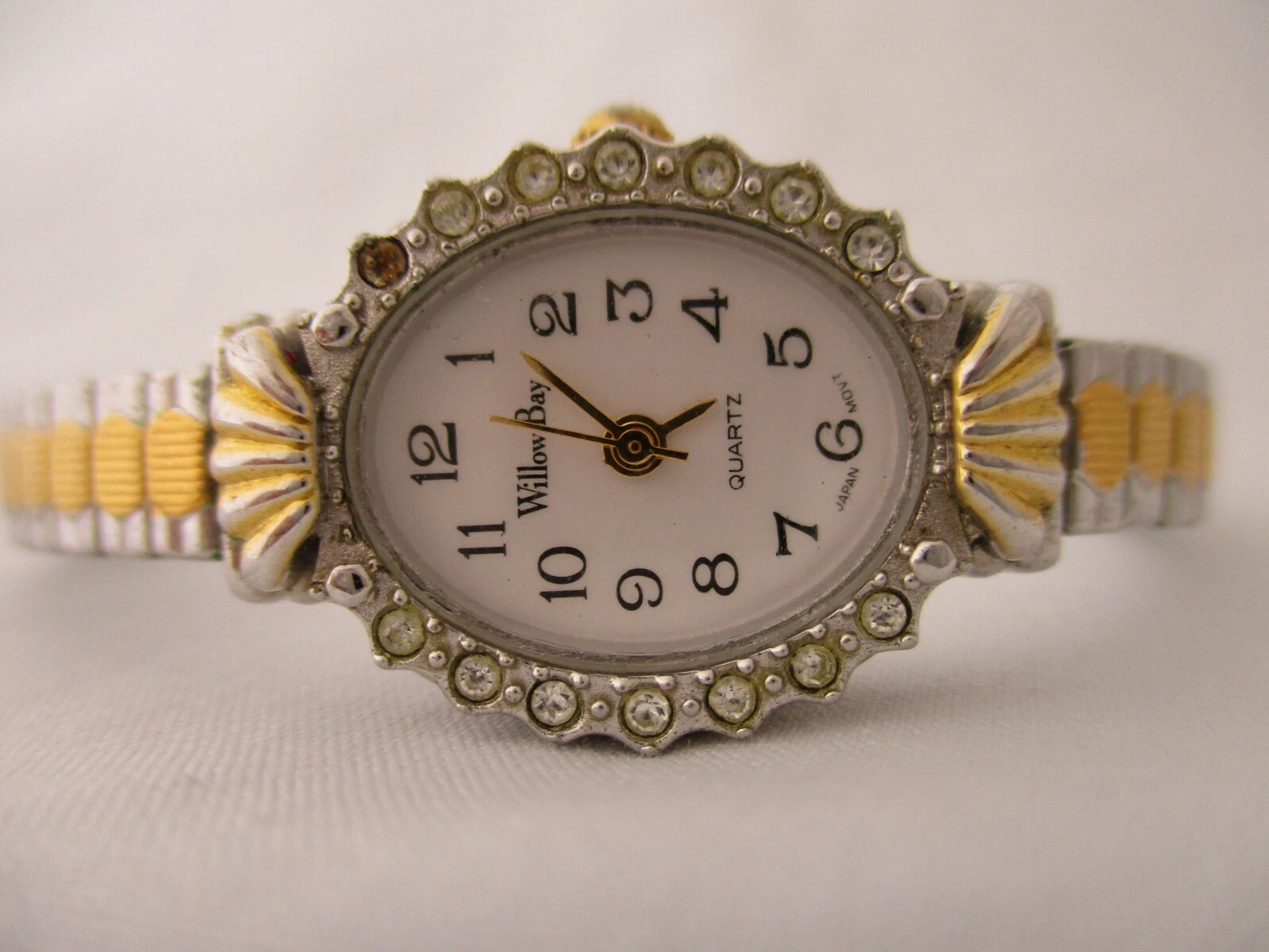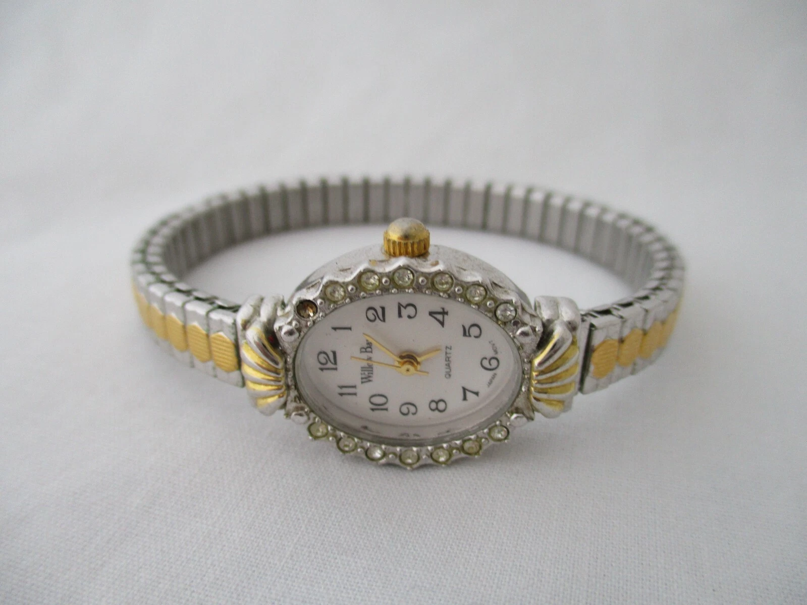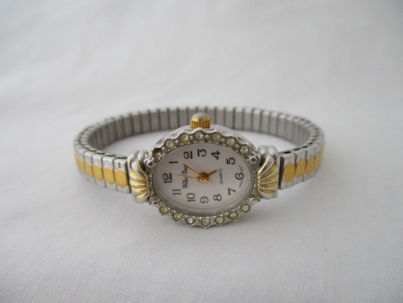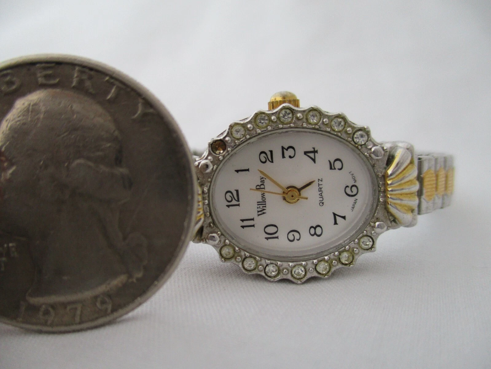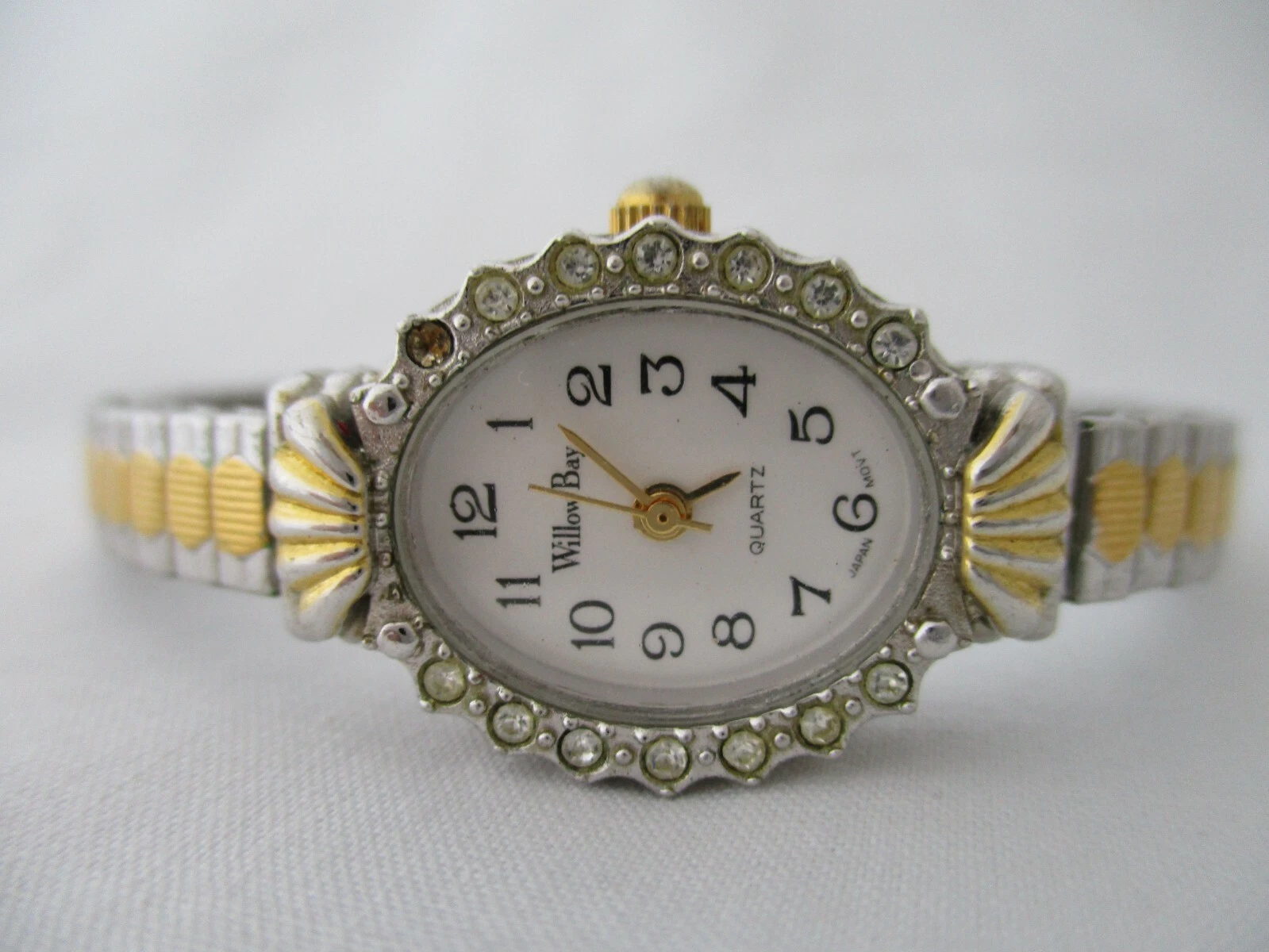 Willow Bay Women's Two Toned Watch Stretch Band Analog Rhinestones