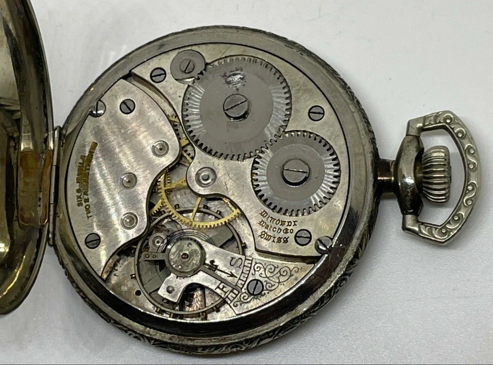 WINDSOR SWISS POCKET WATCH Needs a Service / Does Not Run 6 Jewels 2 Adjustments