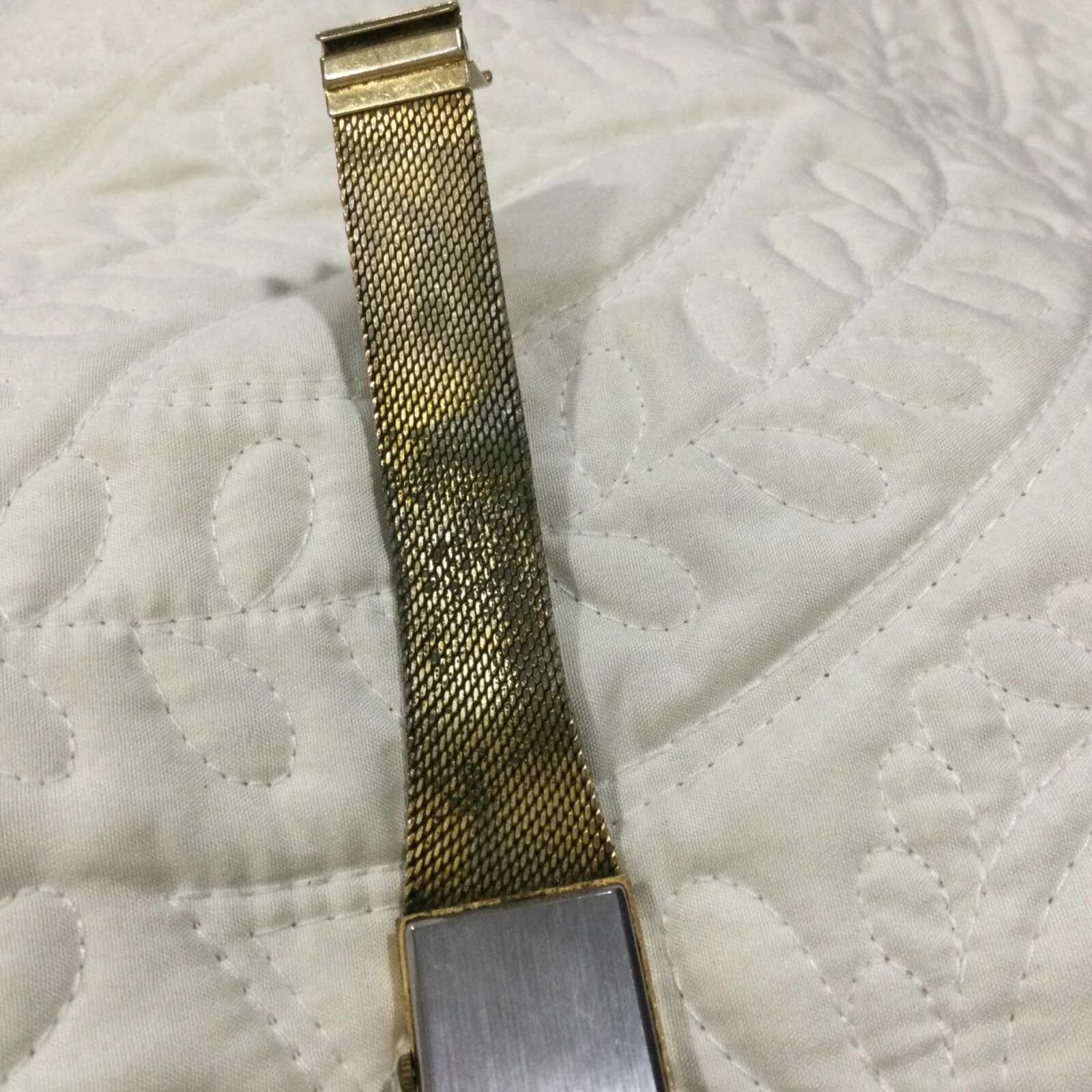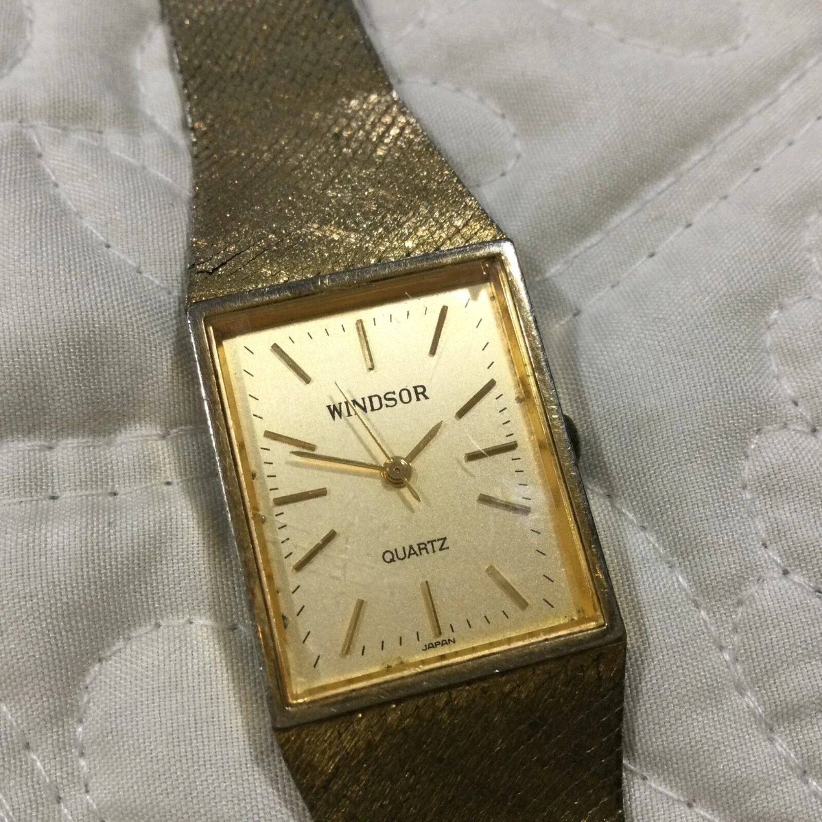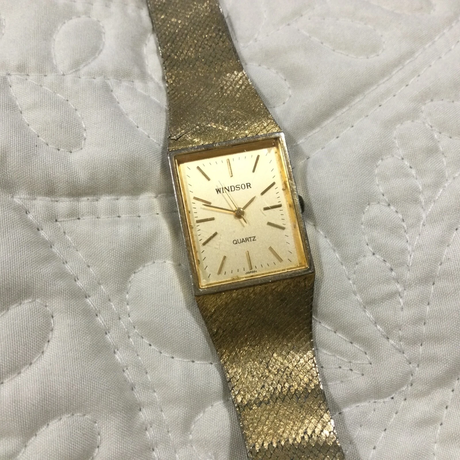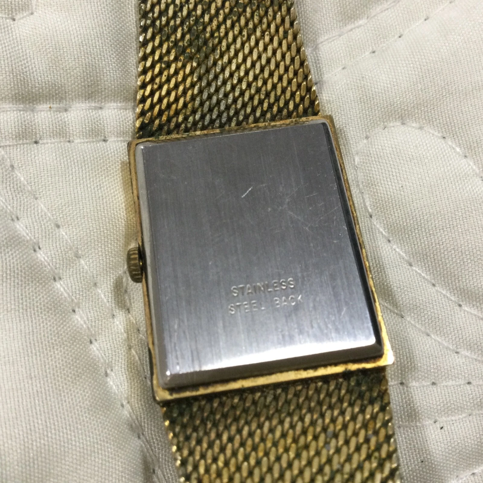 Vintage Mens Windsor Japan Quartz Gold Tone Rectangle Mesh Band Untested
