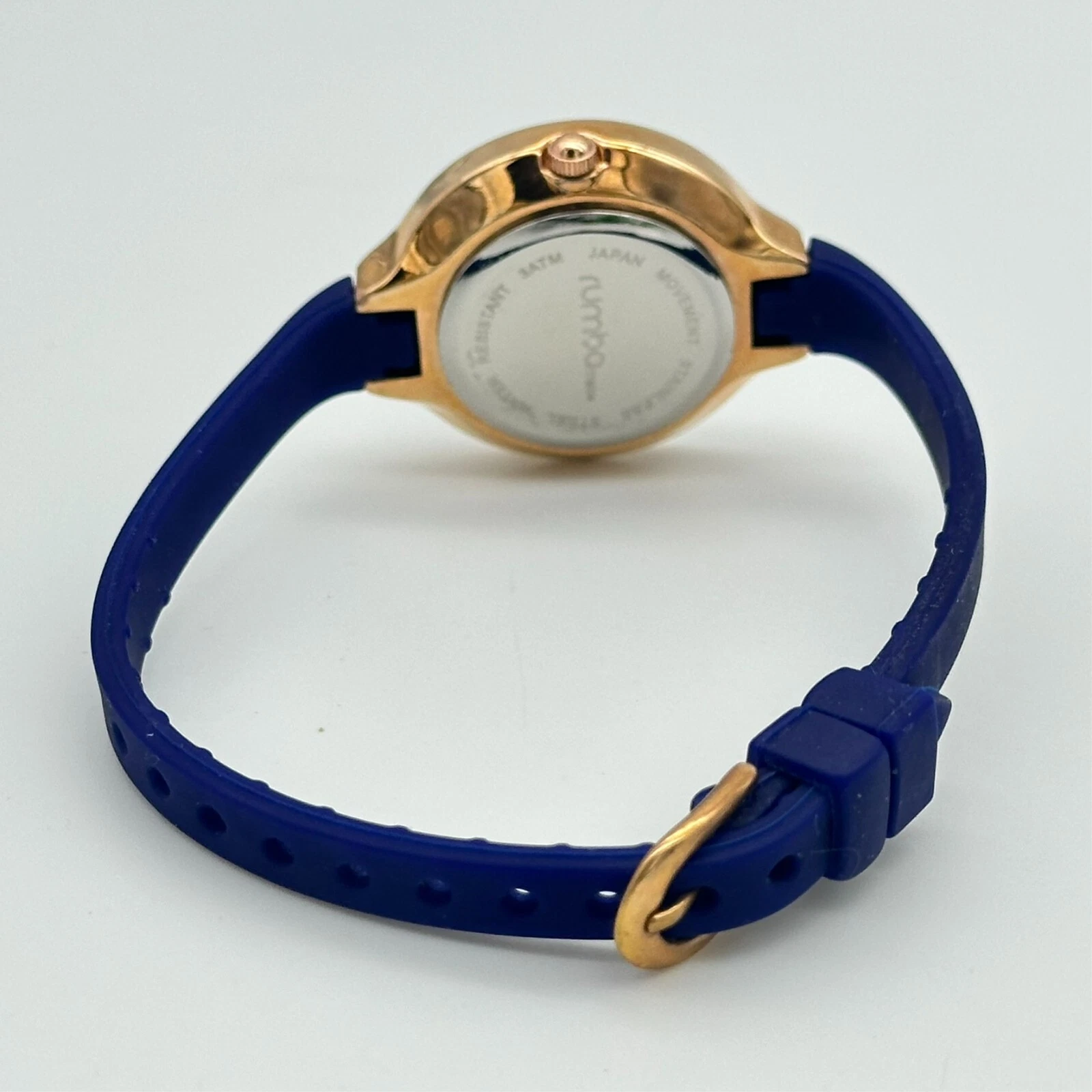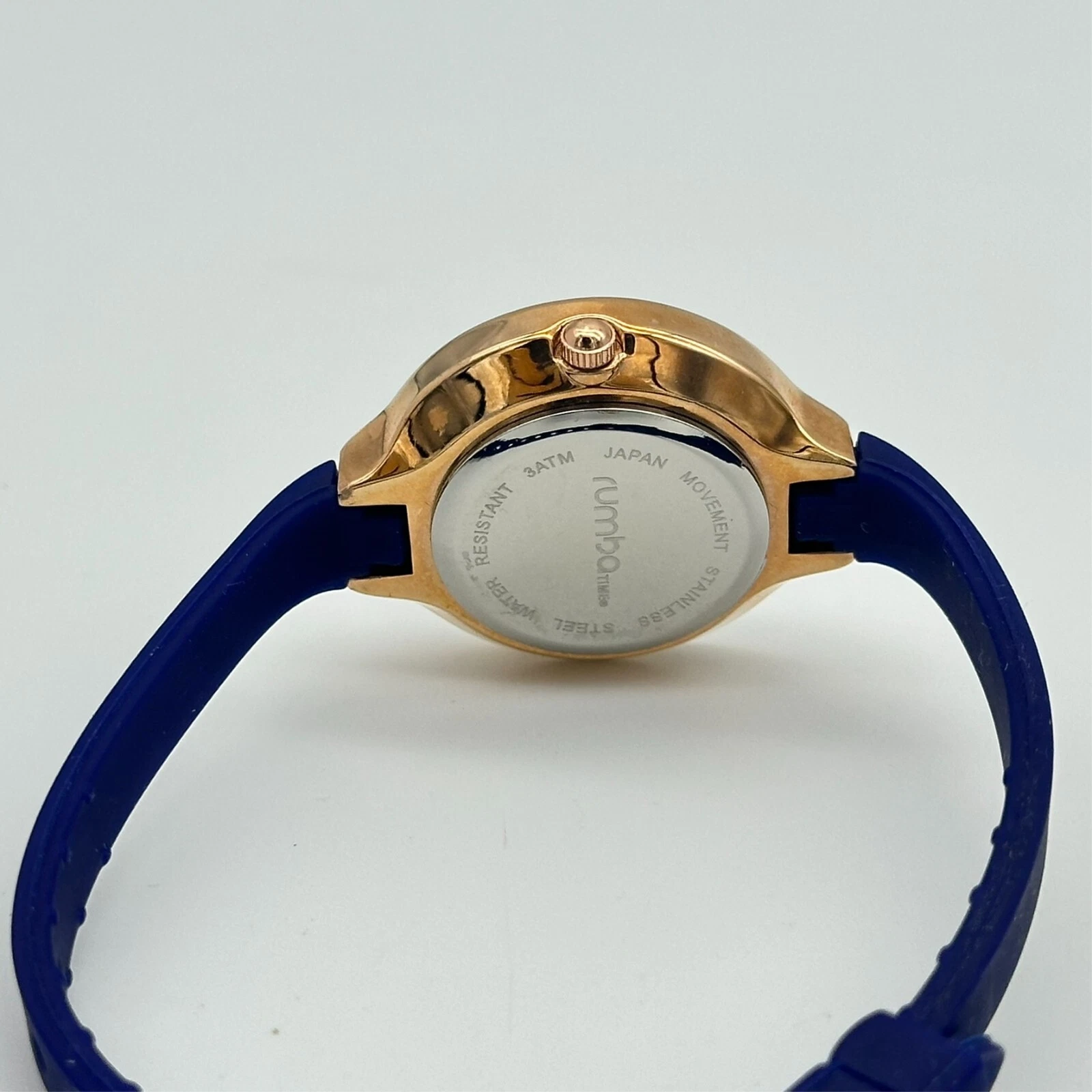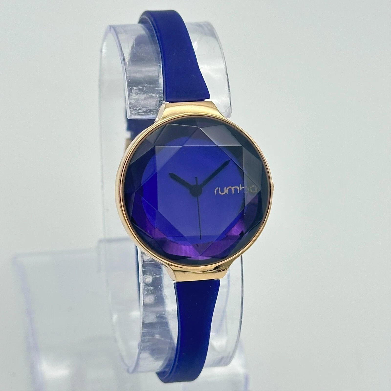 Ladies RUMBA Time Rose Gold Tone, Blue Faceted Crystal Watch, Quartz, 29mm, Runs