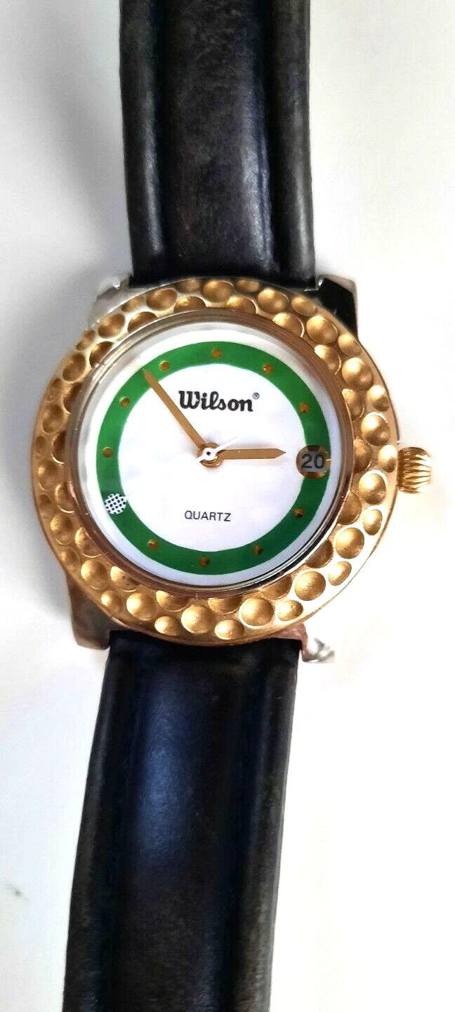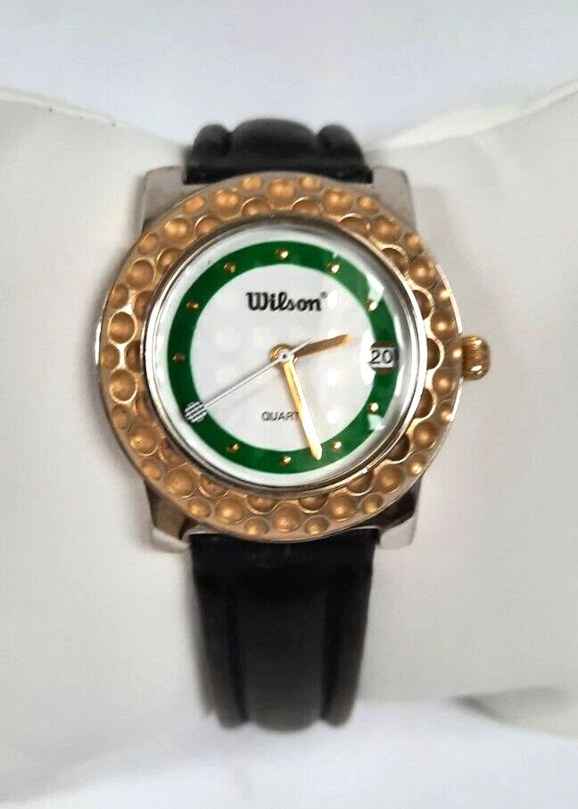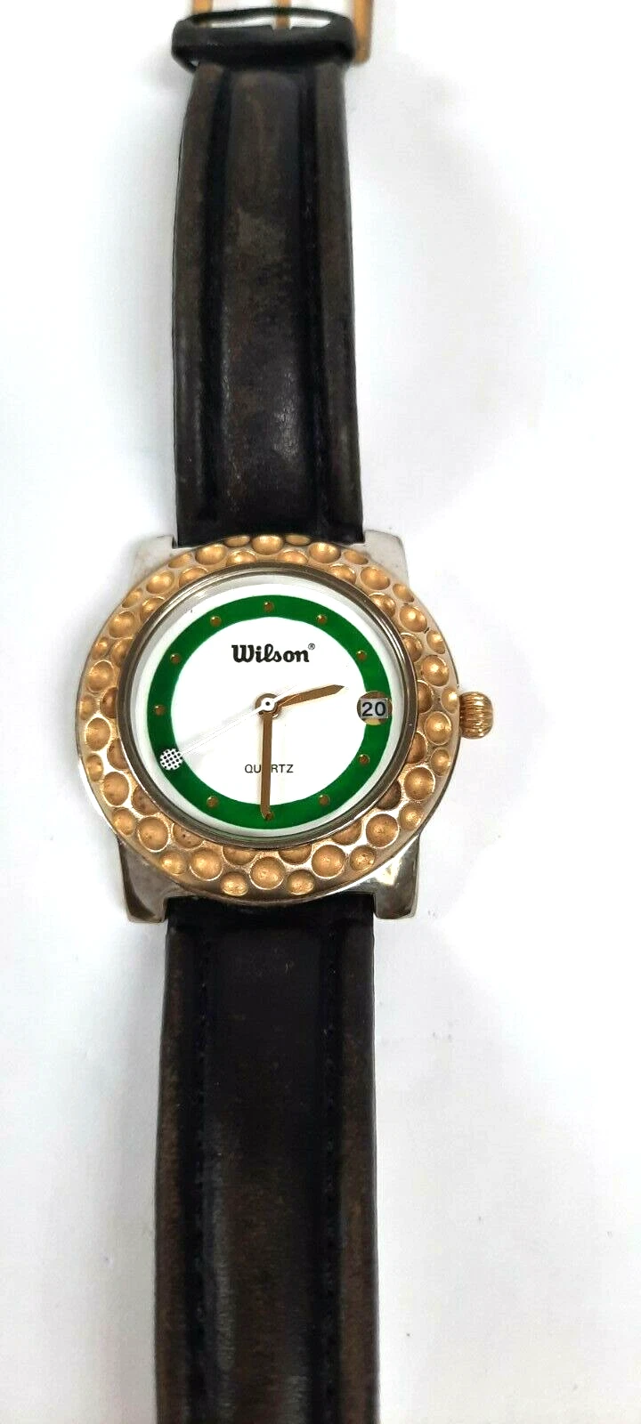Wilson LWA120 Golf Watch Date Gold Green Golf Ball Fresh Battery Pre-owned