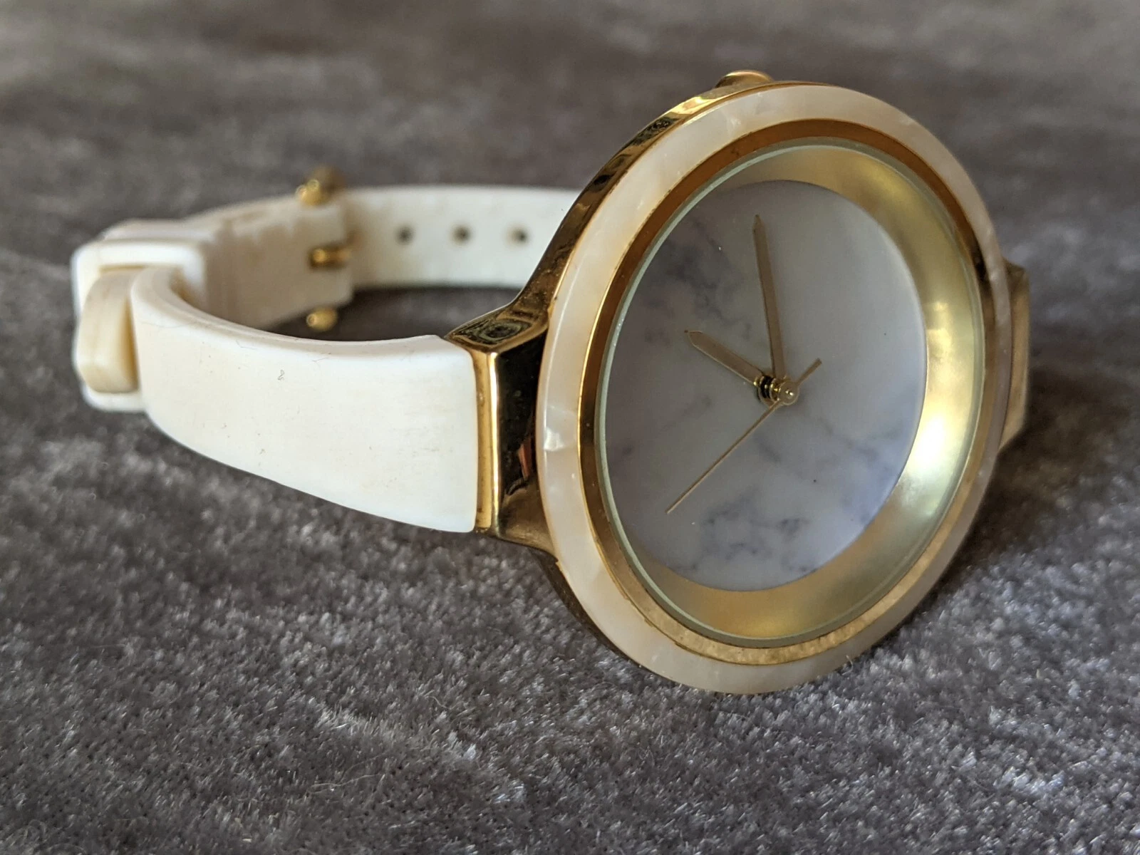 Rumba Time Women's Gold Tone Marble Style Dial Silicone Bands