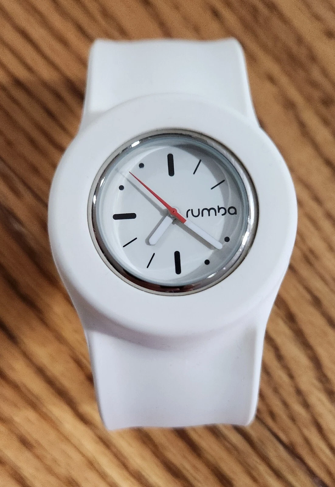Rumba Watch White Slap On Band with White Face & new Battery (Working No Issues)