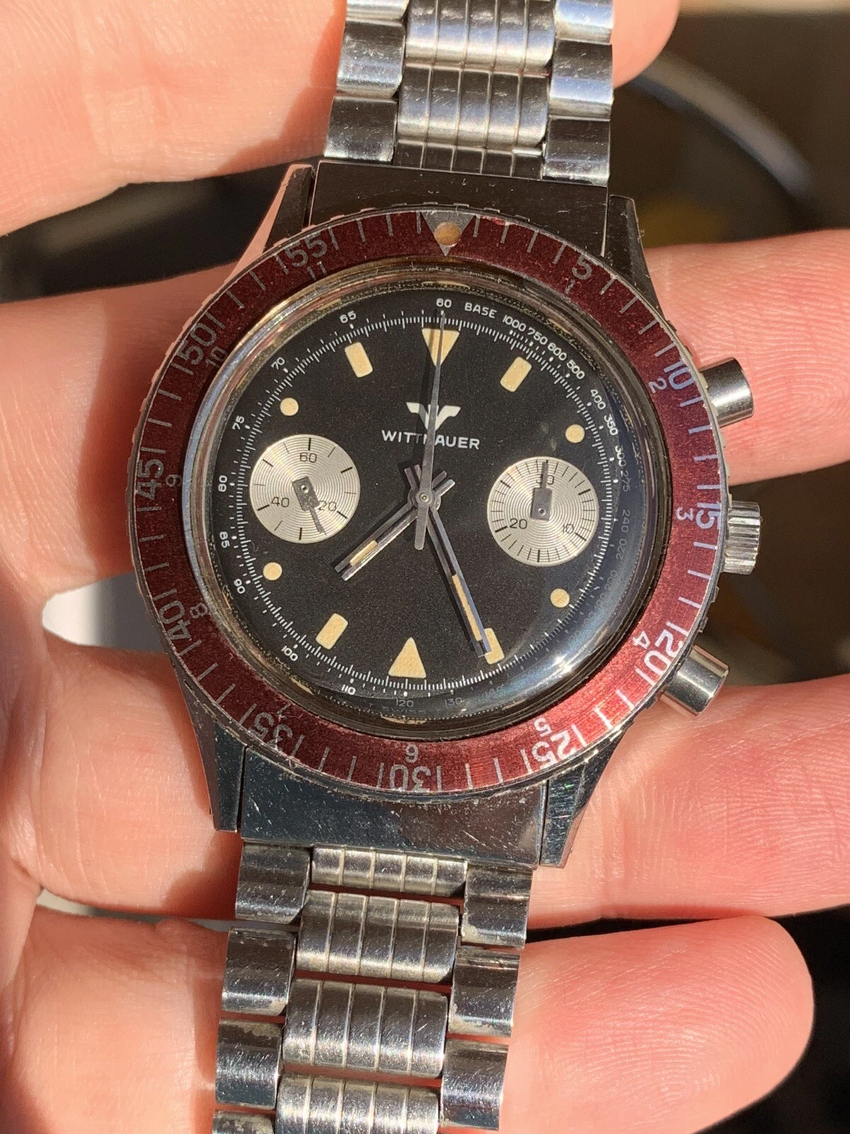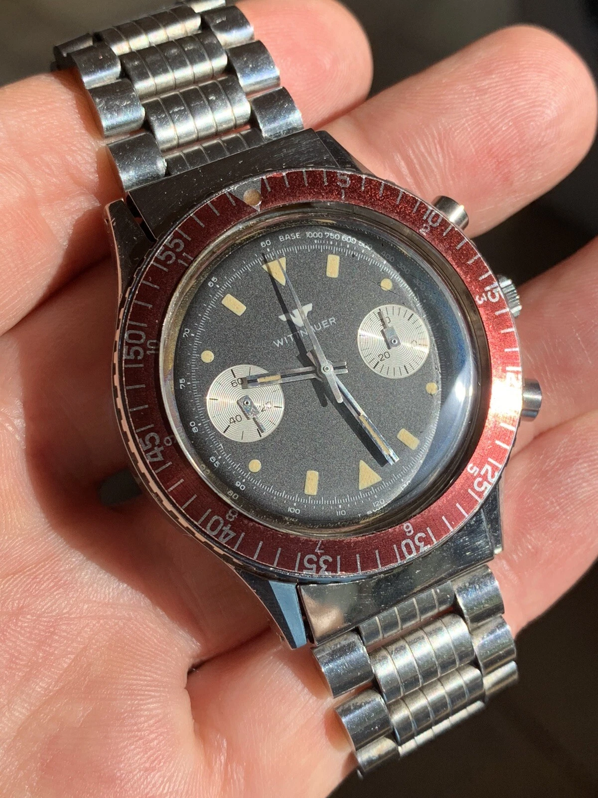 COOL 1970s Vintage Wittnauer Longines Chronograph Mens Watch Ref 3525 40mm Swiss