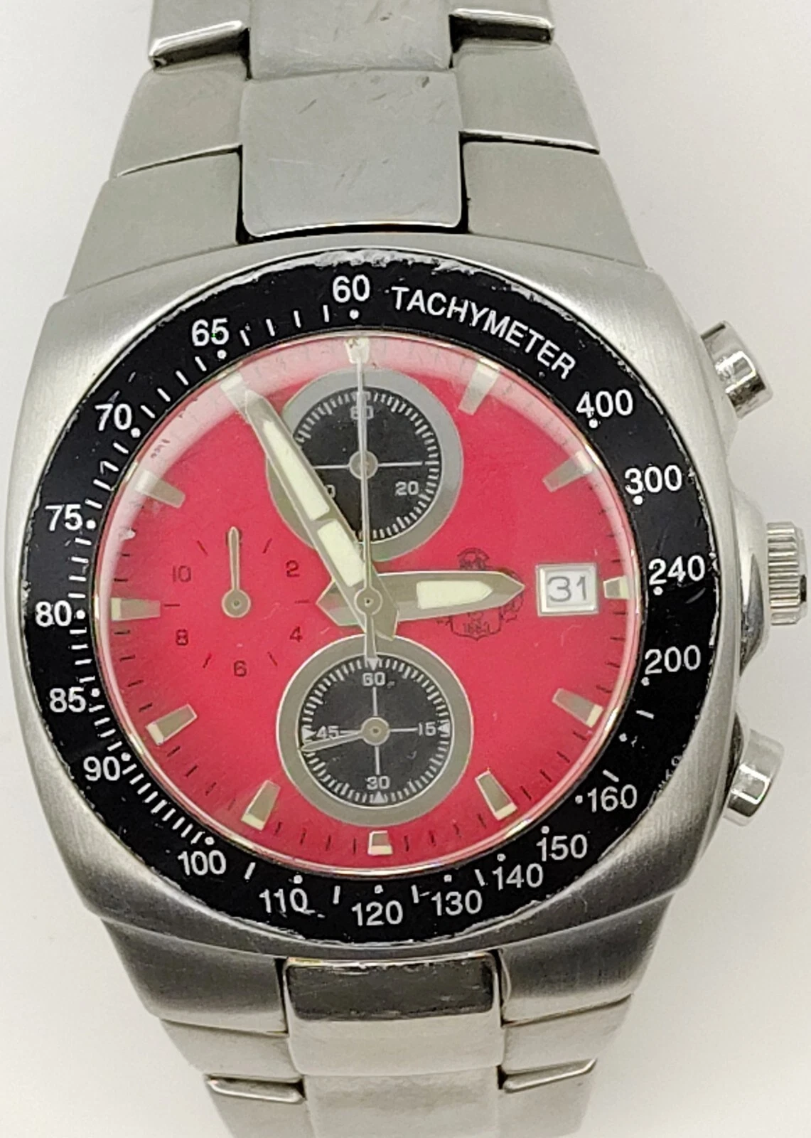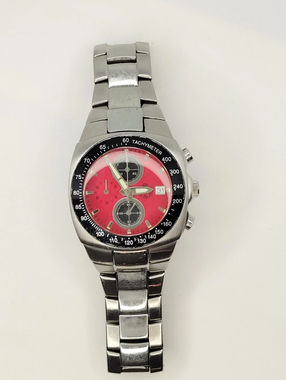 Mens S.U.G. 1883 Chronograph Tachymeter Sub Dials Speed Racer Quartz Red Watch