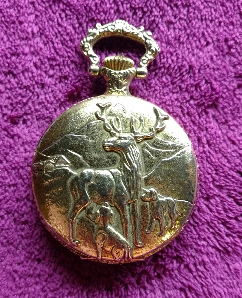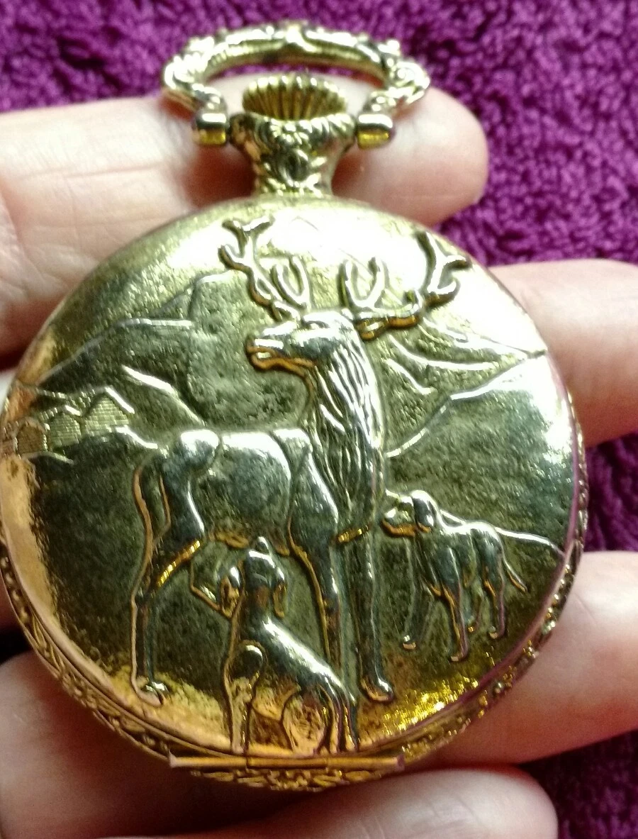 WINDSOR DEER CARVED CASE POCKET WATCH! Quartz!