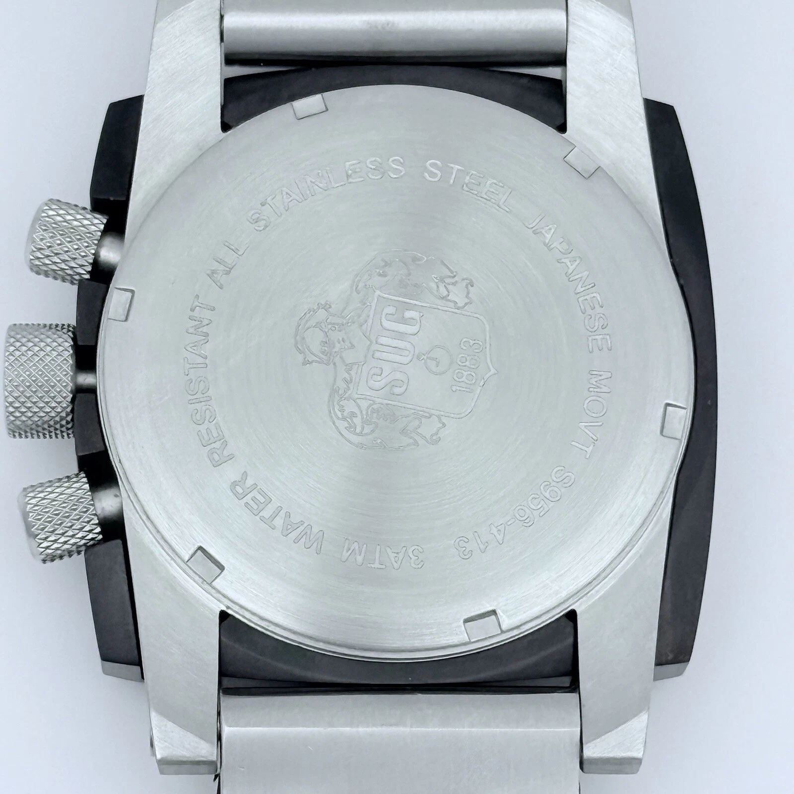 SUG Men's Watch S956-413 Black Stainless White Japan Movement 3ATM Resin Strap