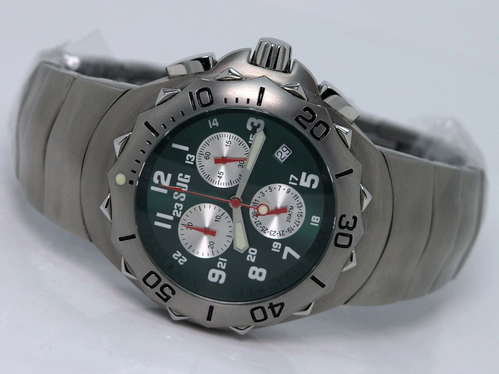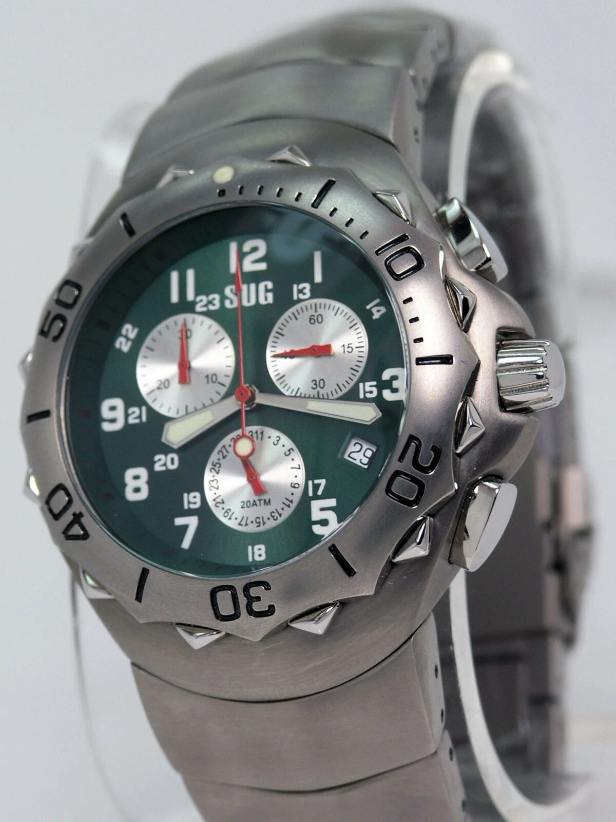 NEW SUG  TITANIUM  GREEN SWISS QUARTZ CHRONOGRAPH SPORT WATCH SUPREME