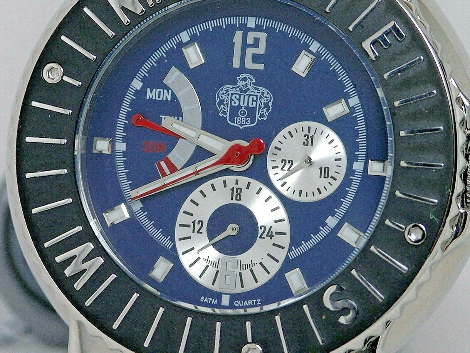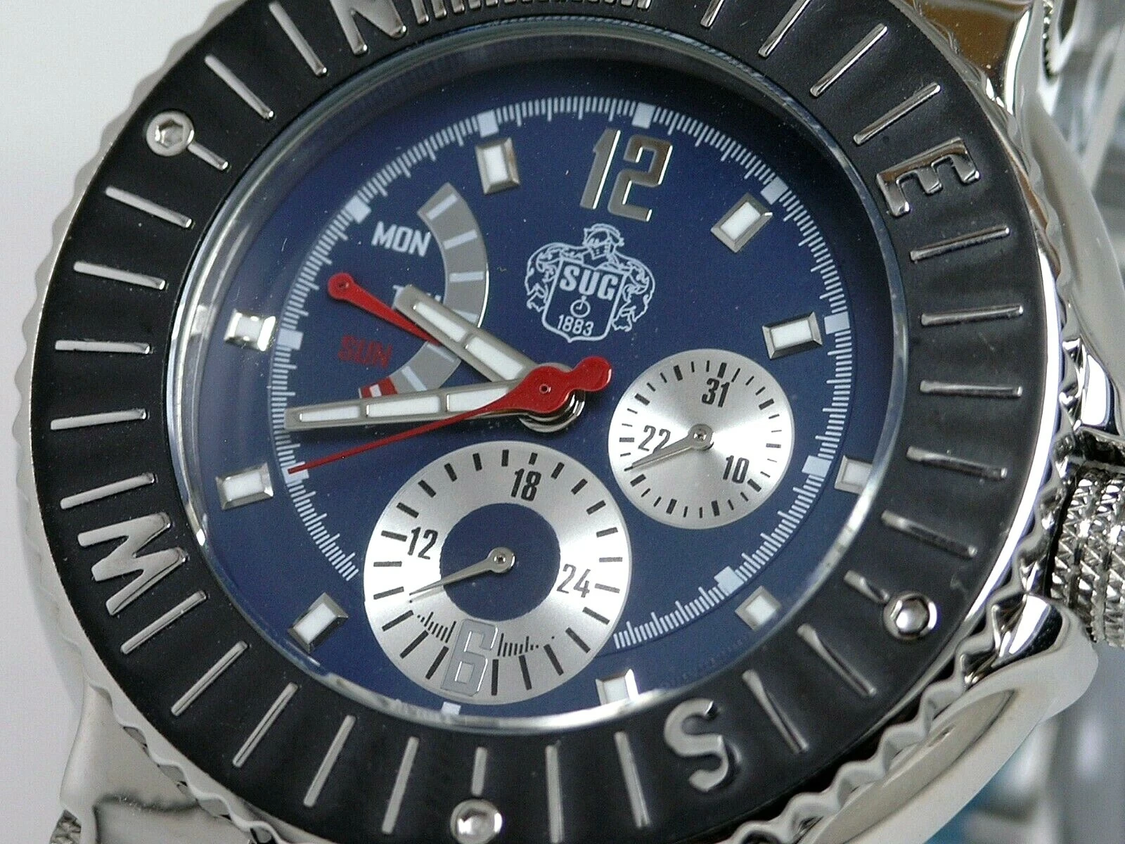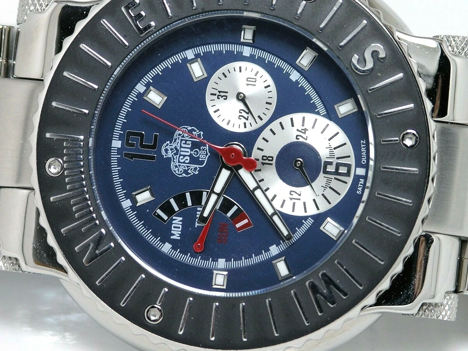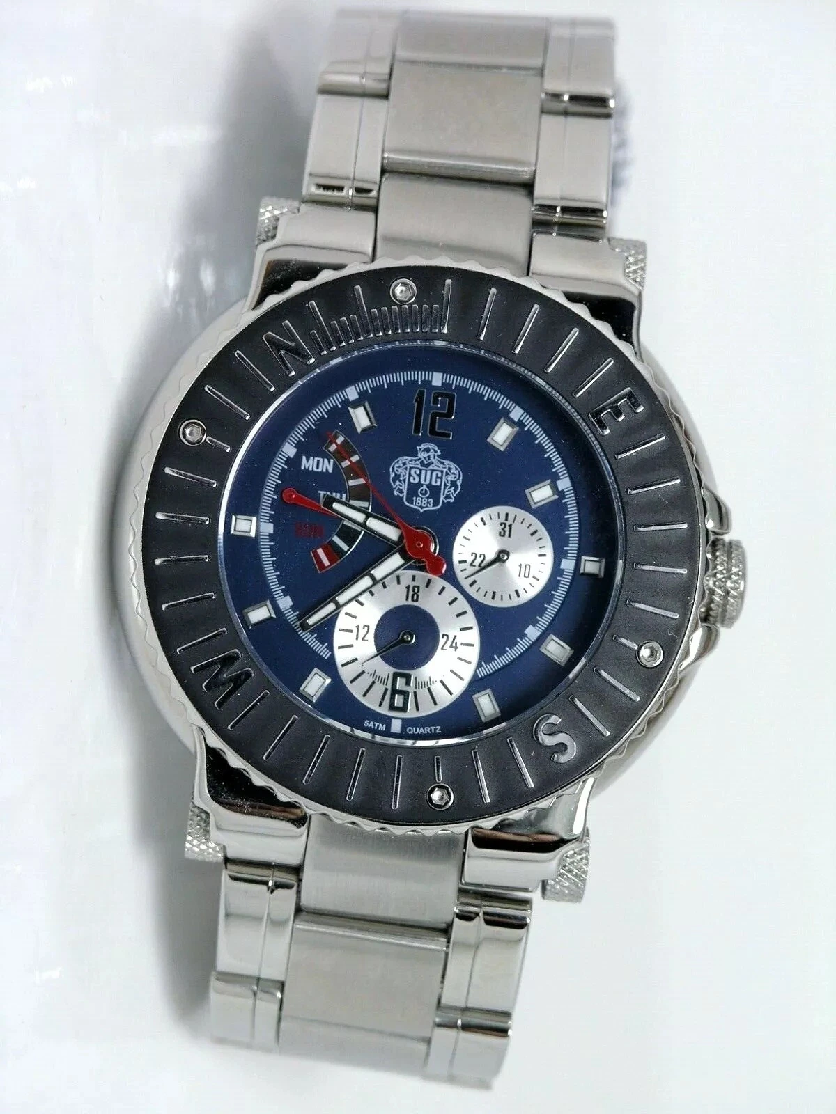 NEW SUG MULTI FUNCTION STEEL BLUE ANALOG FLYBACK WATCH W/SEIKO QUARTZ MOVEMENT