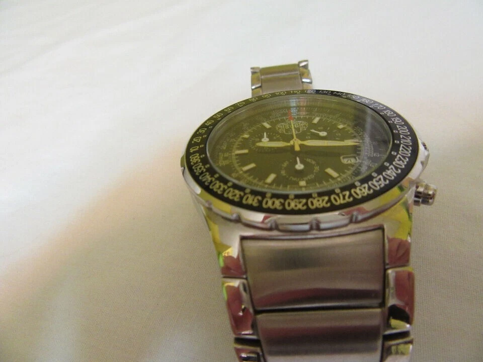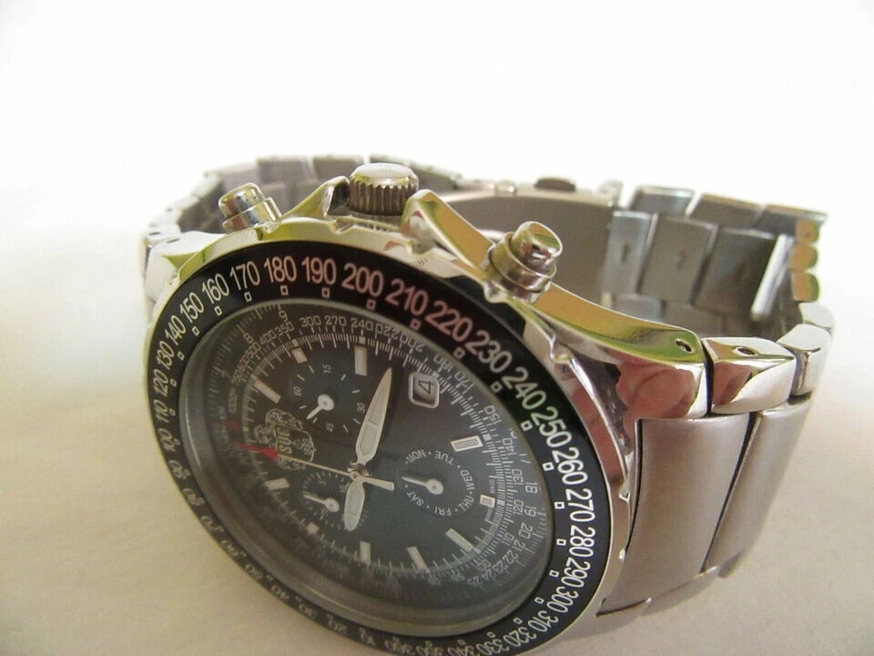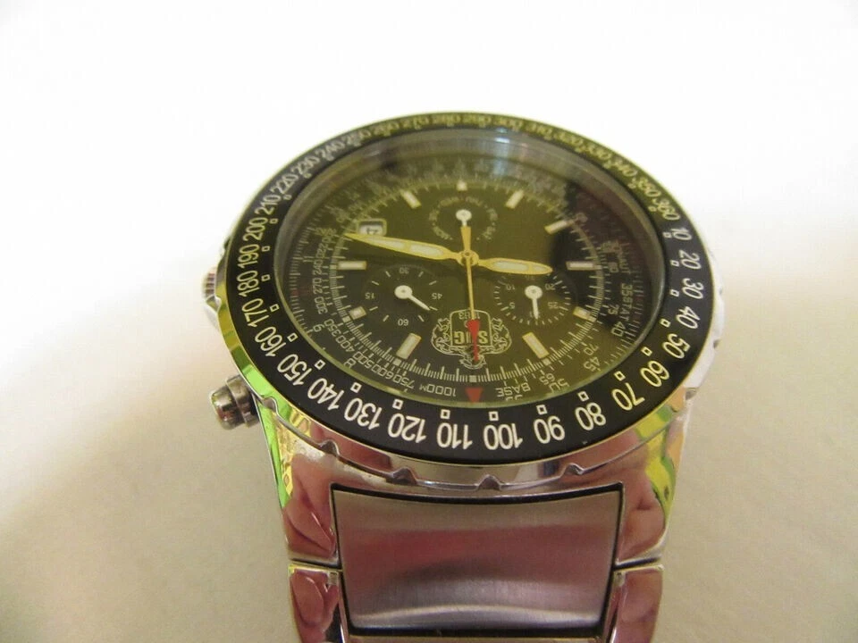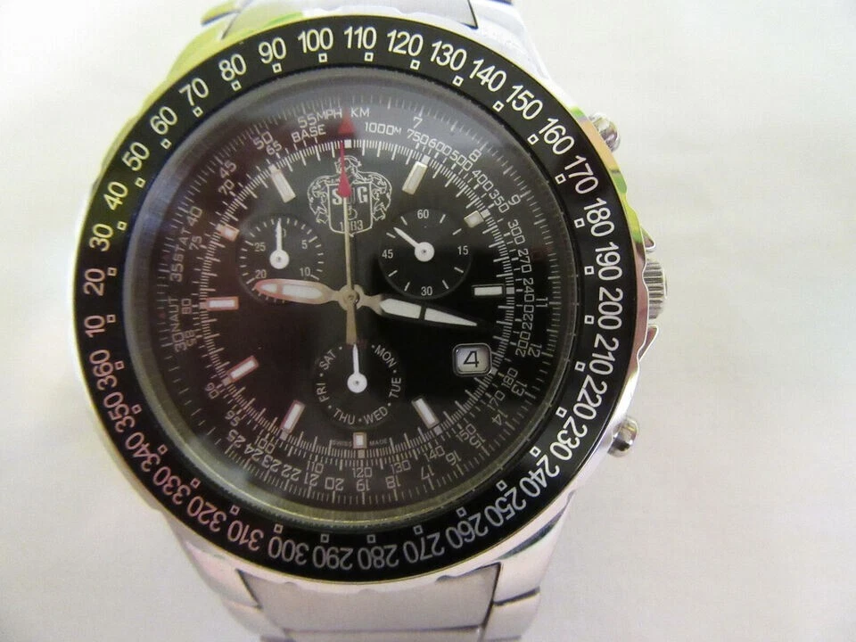 SUG Aviator Chronograph 1883 Black Face Tachymeter Stainless Steel Men's Watch