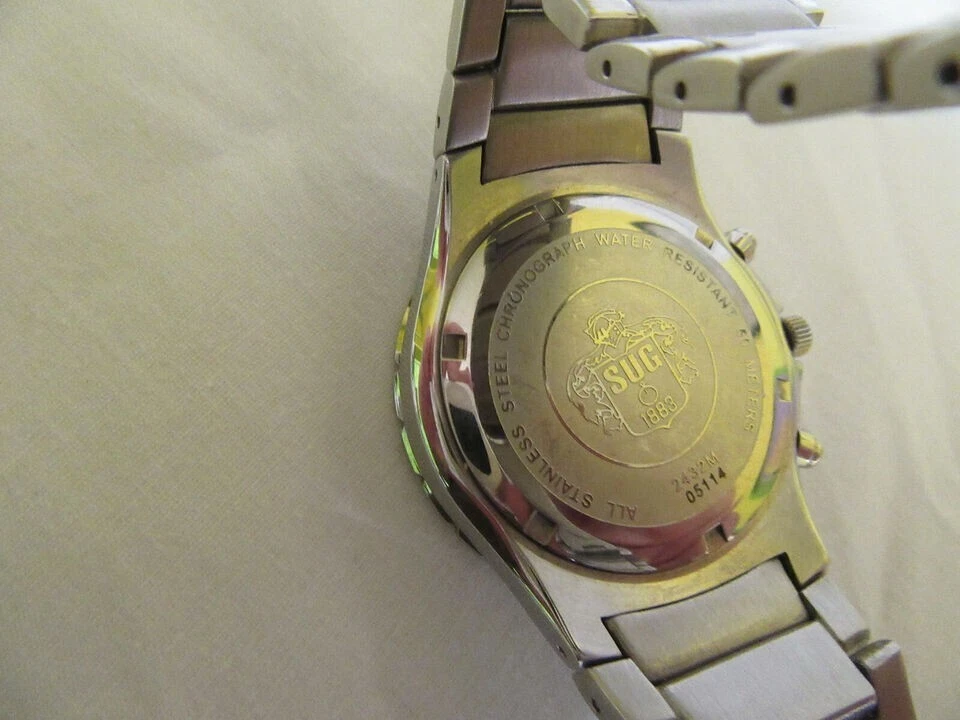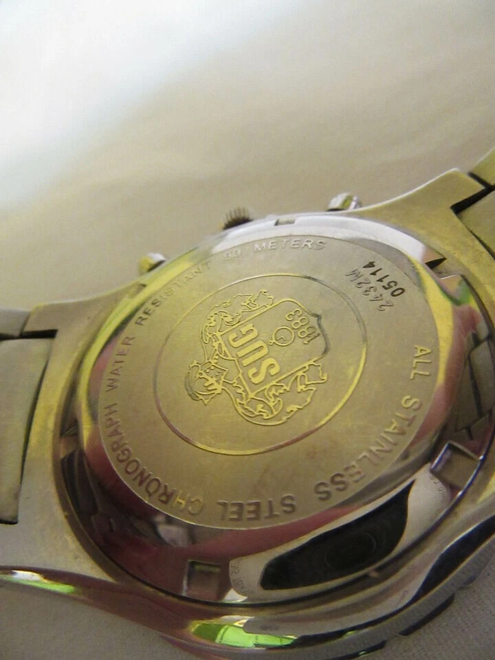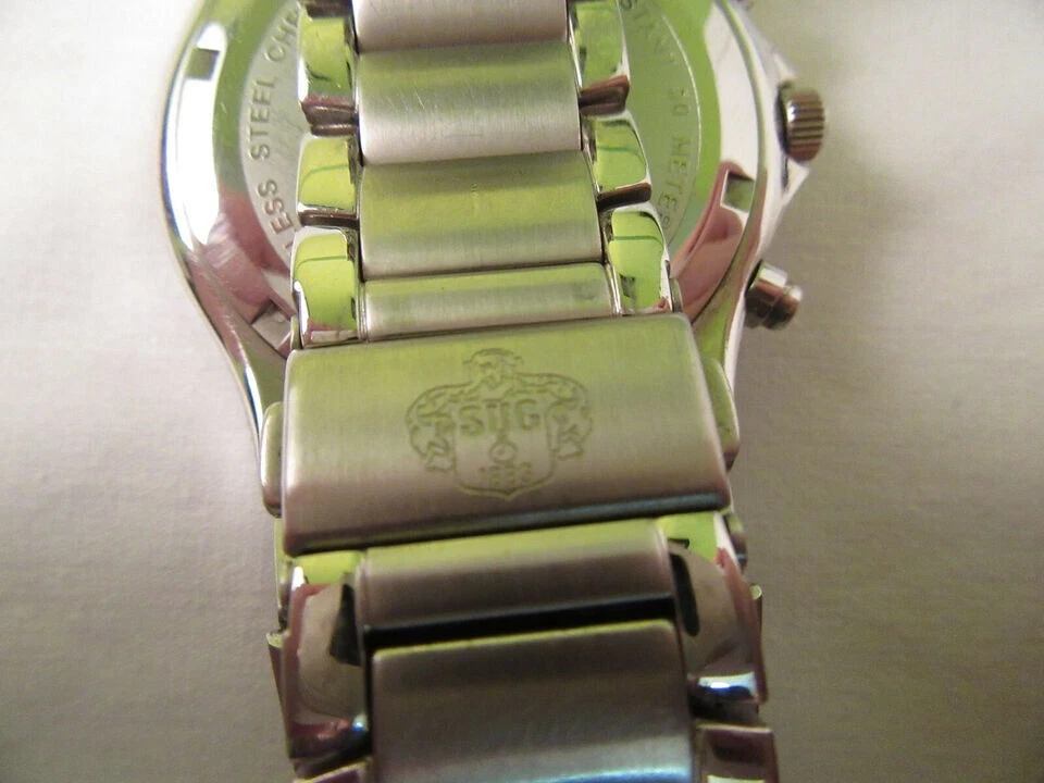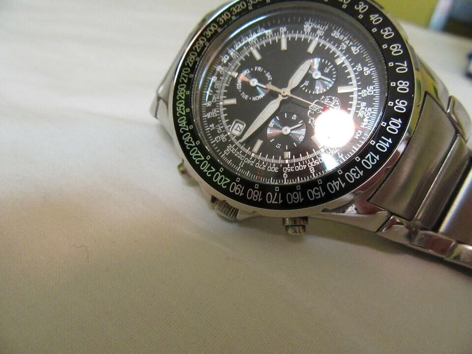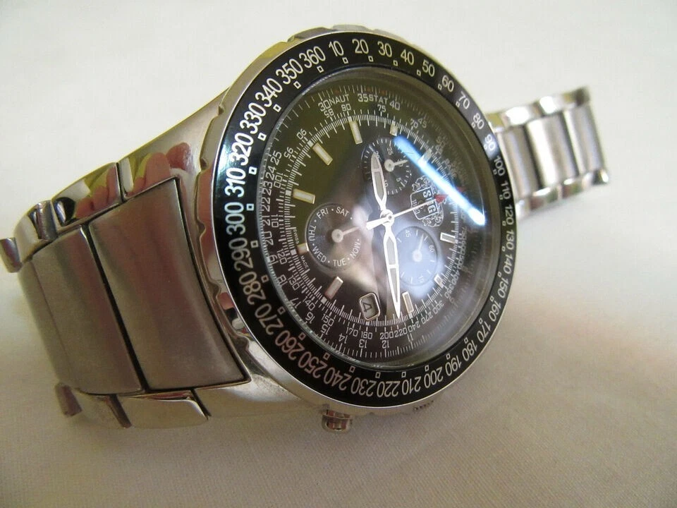 SUG Aviator Chronograph 1883 Black Face Tachymeter Stainless Steel Men's Watch
