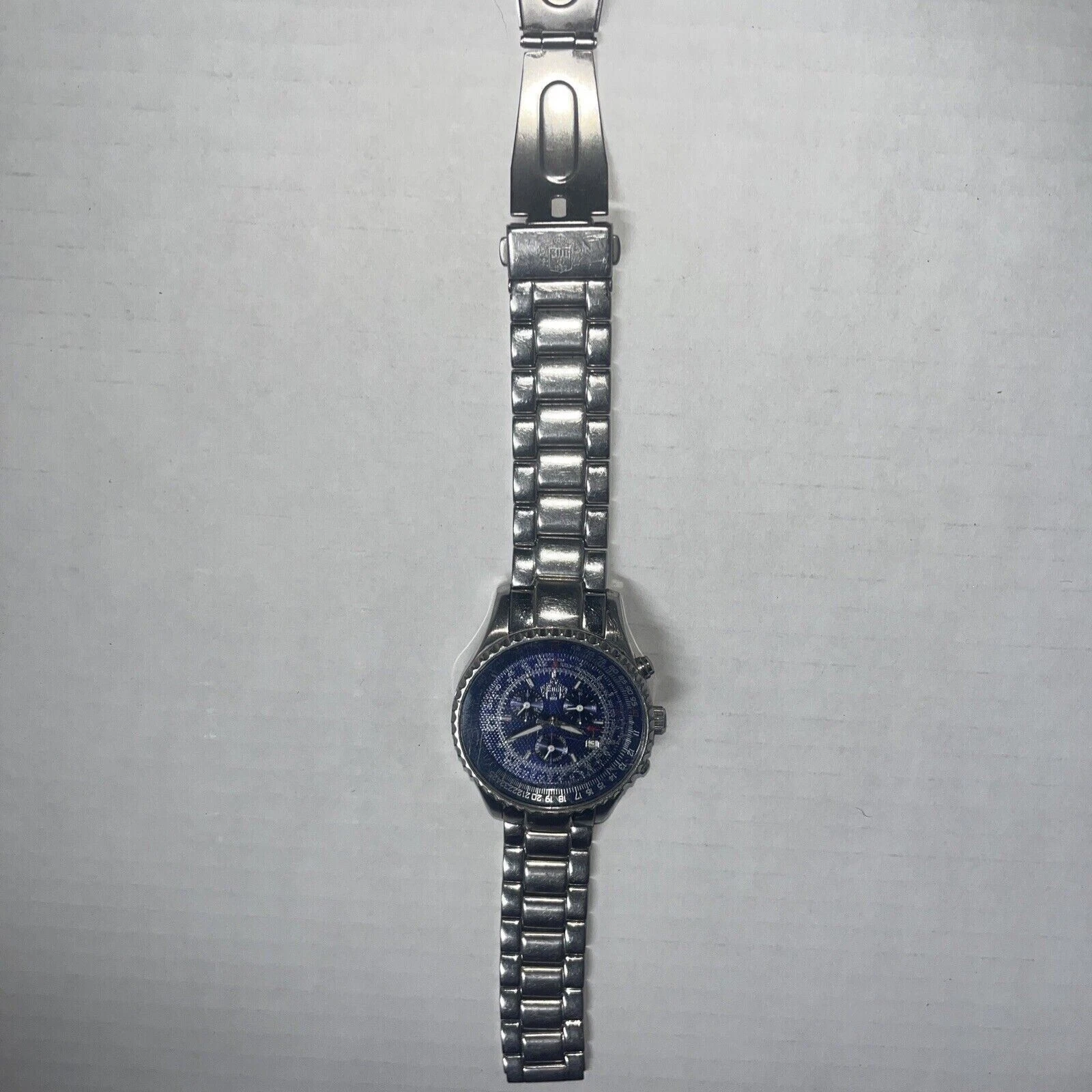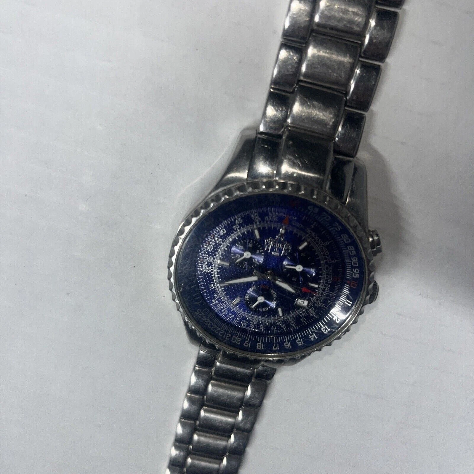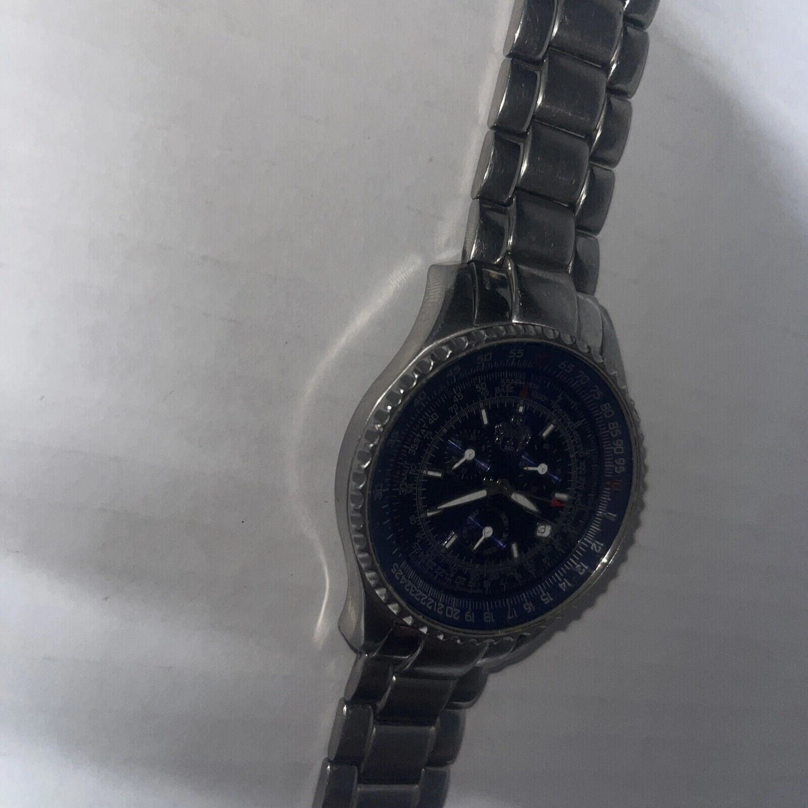 SUG Aviator Chronograph 1883 Blue Face Tachymeter Stainless Steel Men'sWatch 106