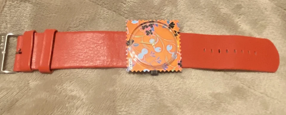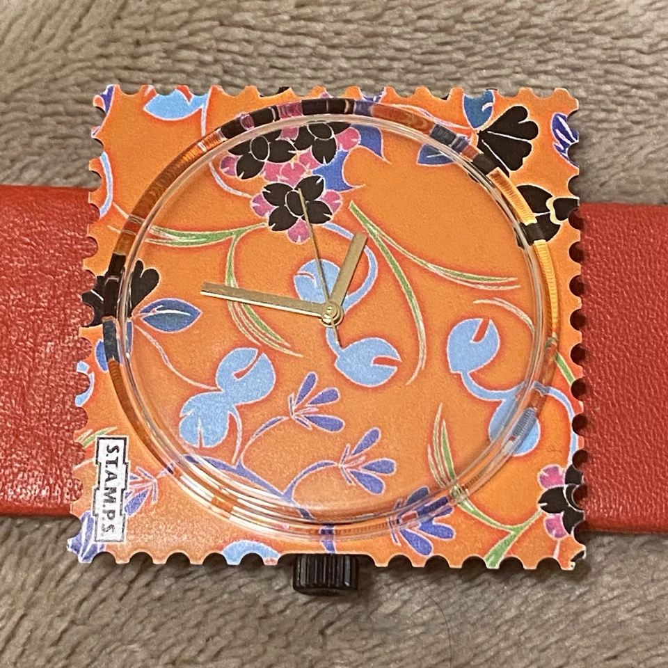 New S.T.A.M.P.S. Orange floral Watch Women red Leather Band Needs Battery