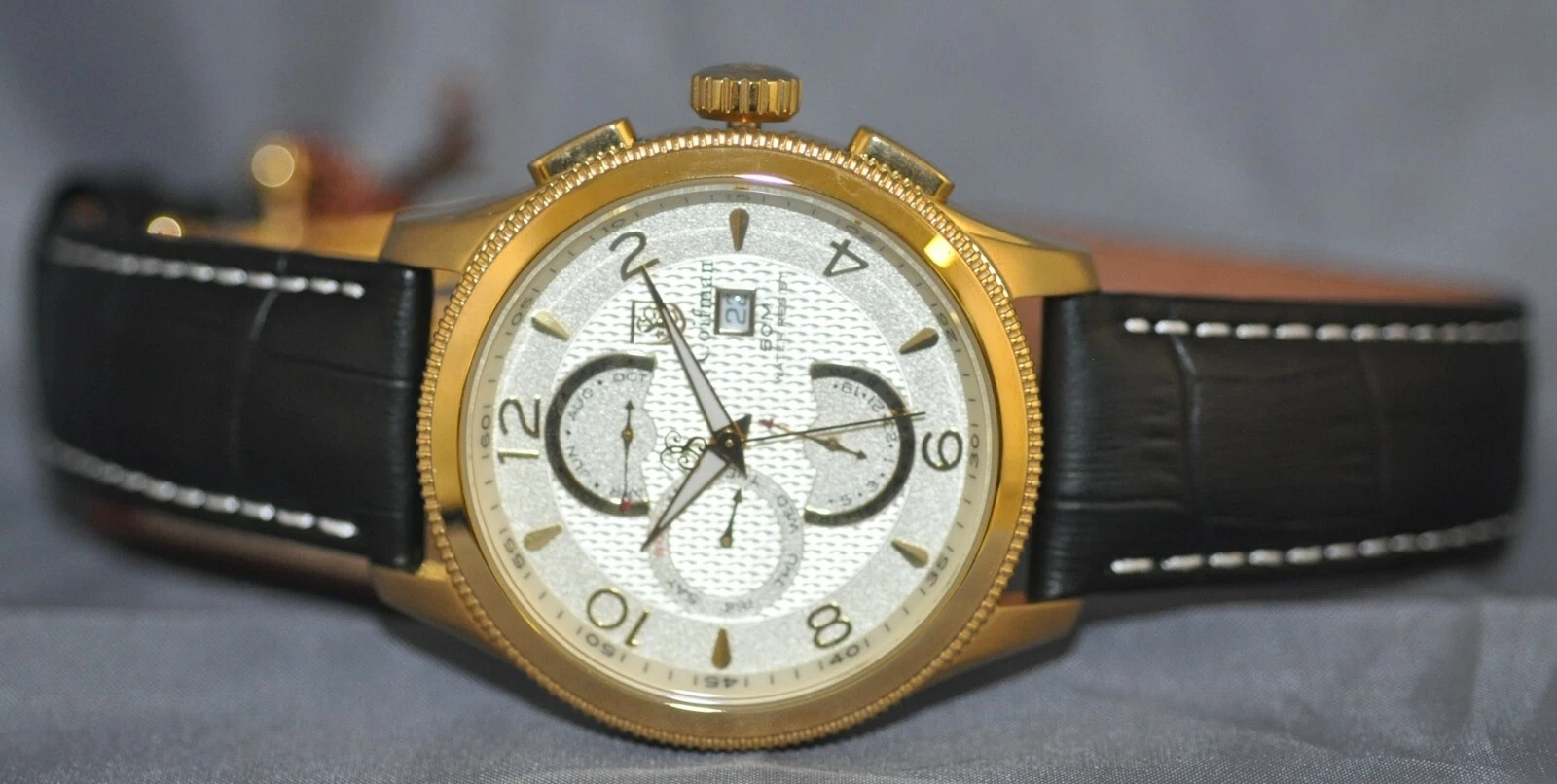 S. Coifman Men's Gold Dial Black Genuine Leather Watch SC0107