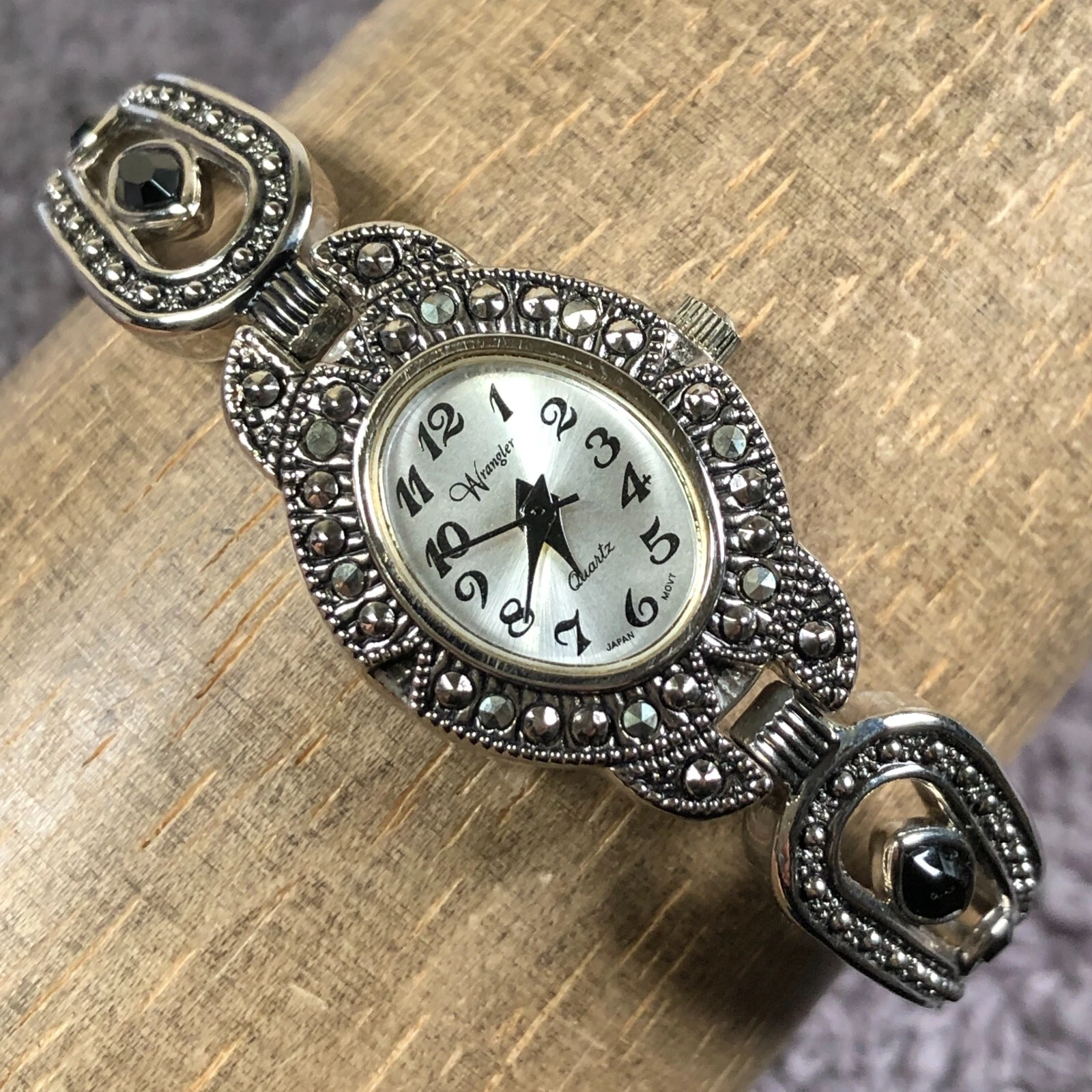 Wrangler Women 91830KNX Silver Tone Marcasite Expansion Quartz Watch 6 1/2"