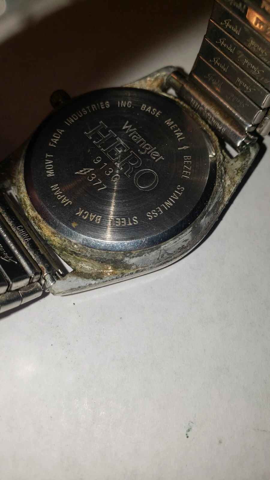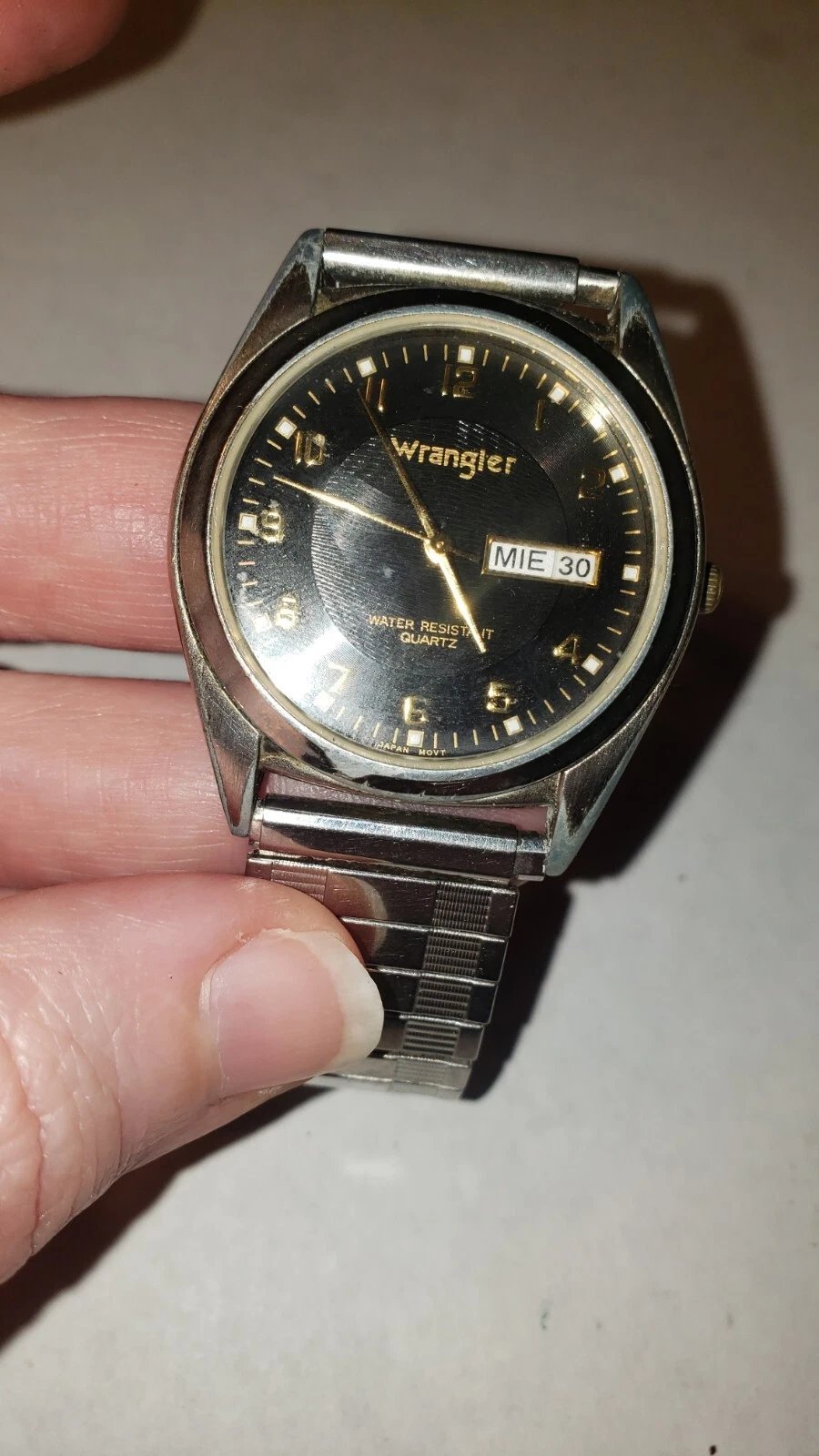Vintage Wrangler Watch Mens Date Silver Tone Quartz Untested Needs Battery