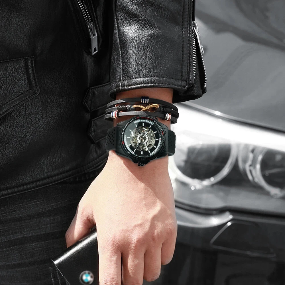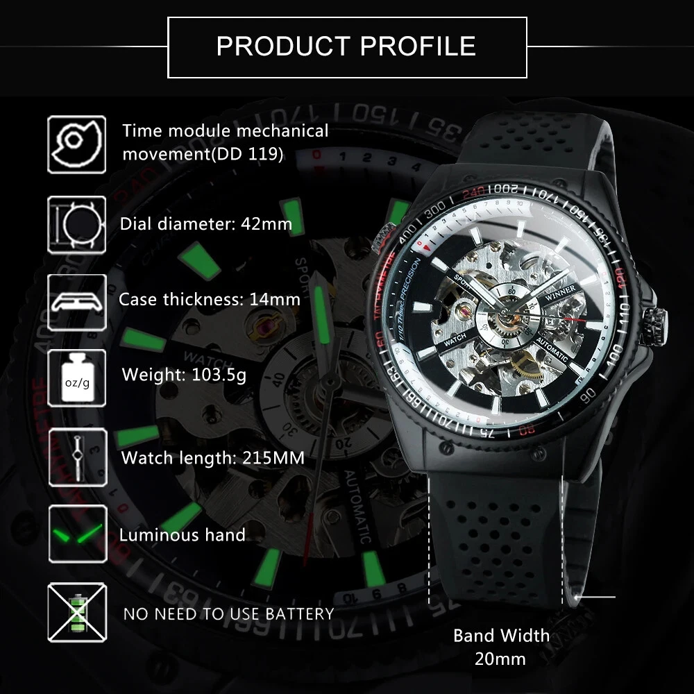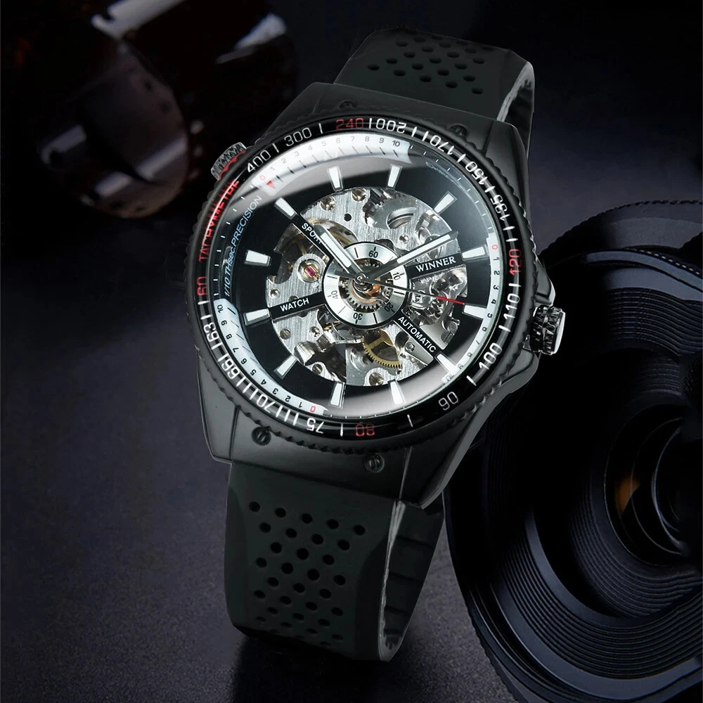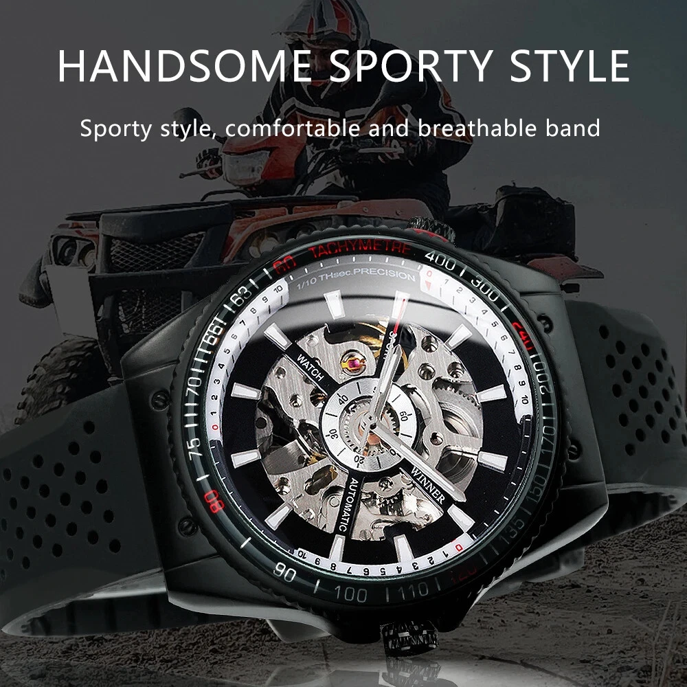 WINNER Military Sport Watch Mechanical Automatic Men's Silicone Strap Wristwatch