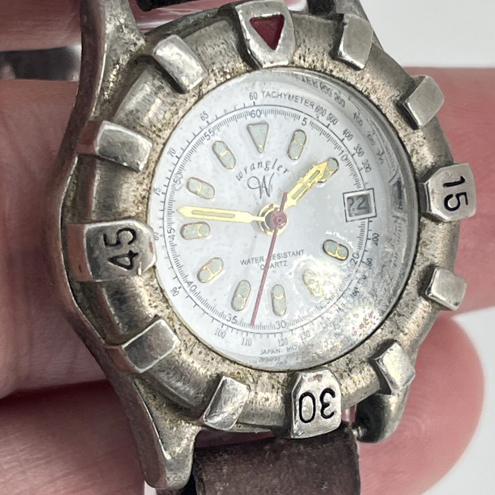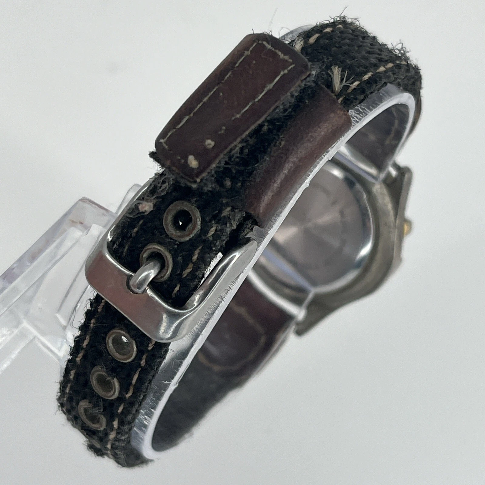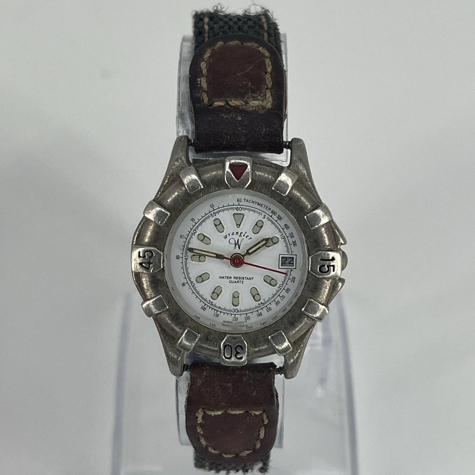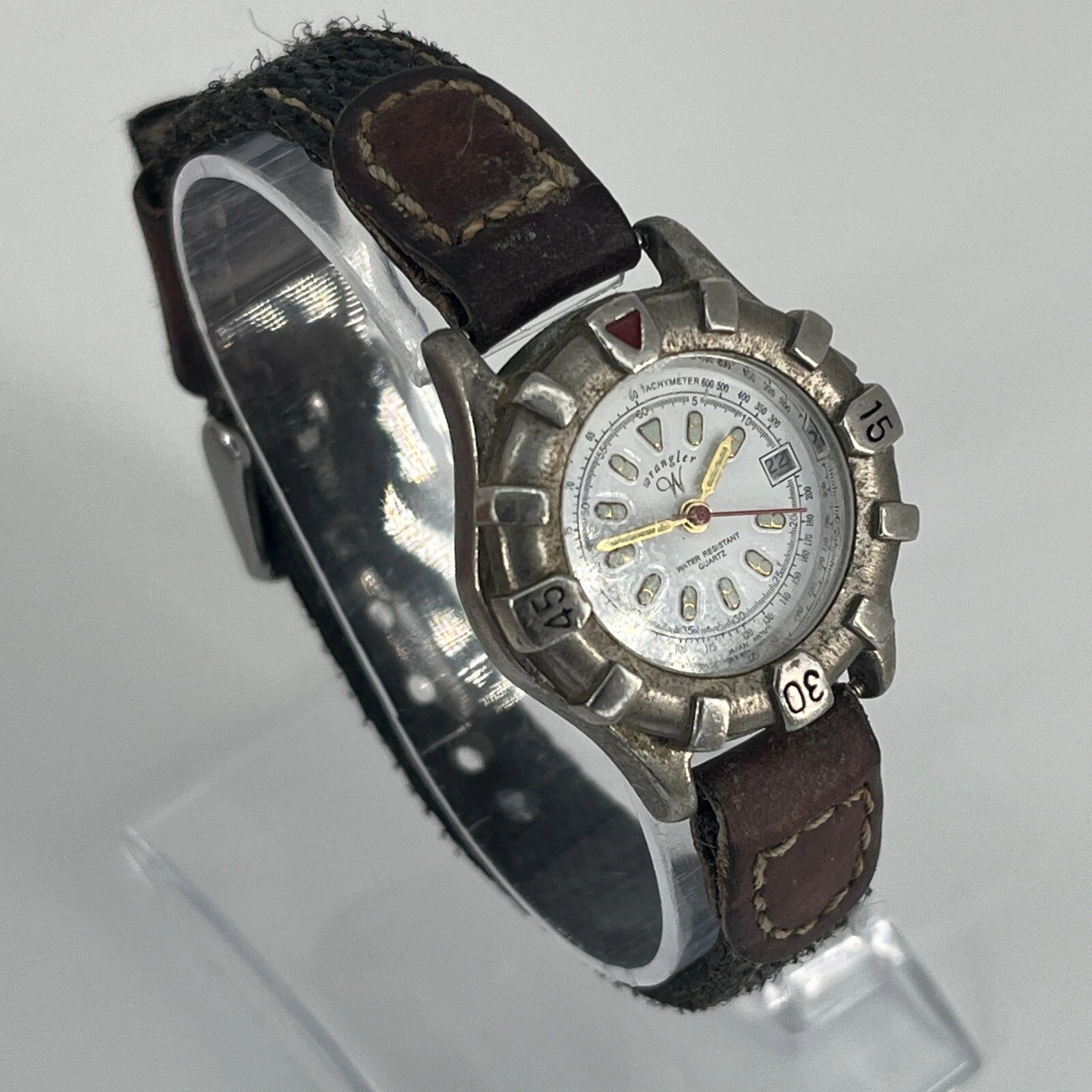Wrangler Analog Watch Gray Brown Buckle Band Date Indicator NEW BATTERY RUNS!
