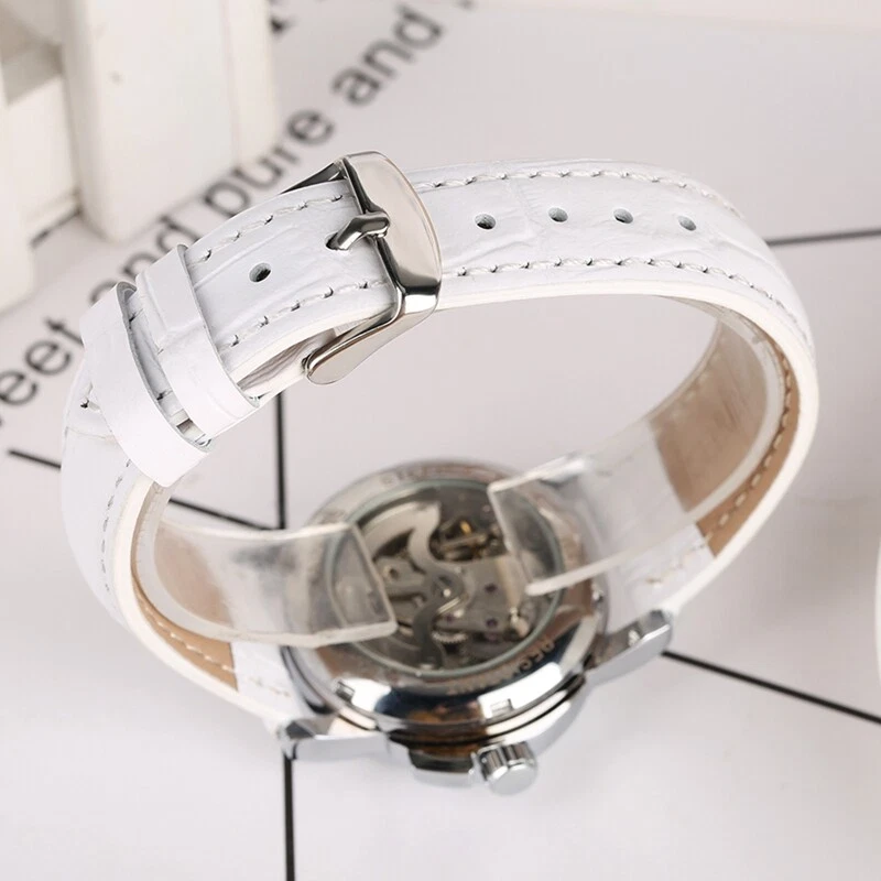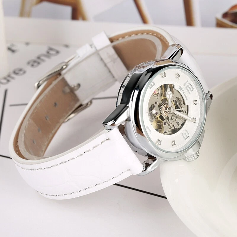 WINNER Brand Women's Mechanical Watch Skeleton Autoamtic Crystal Leather Band
