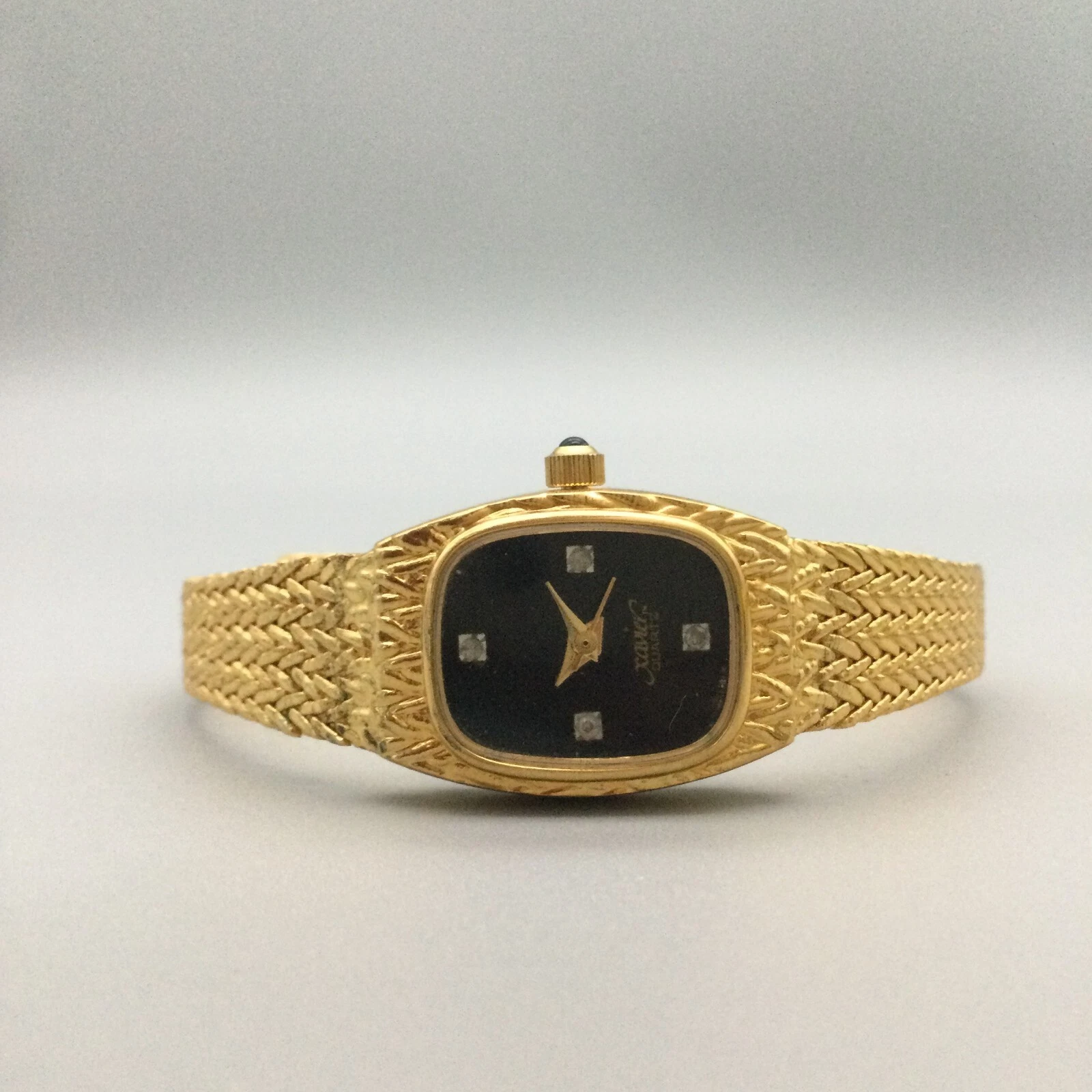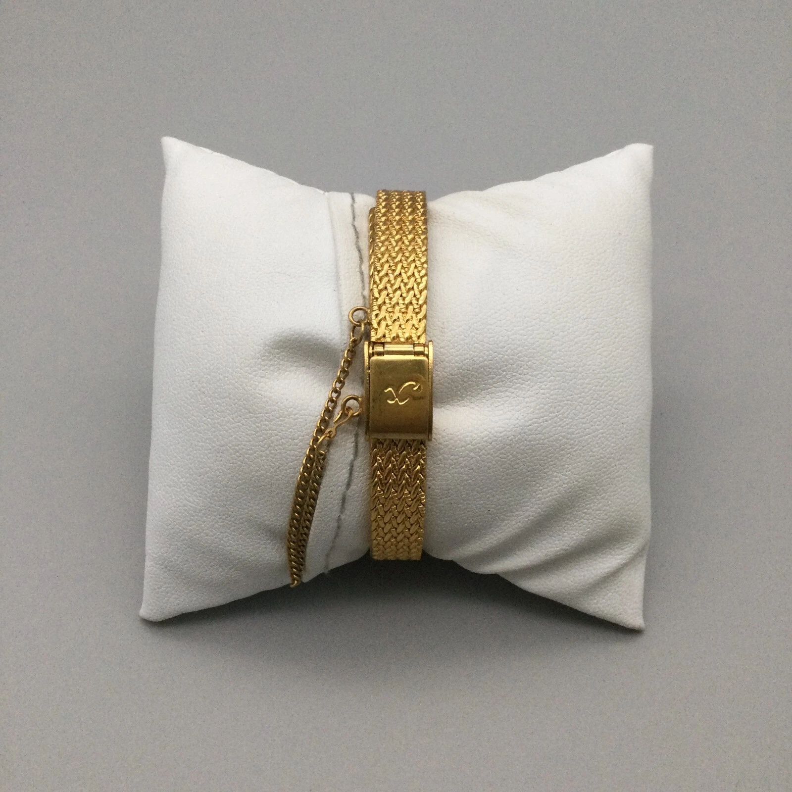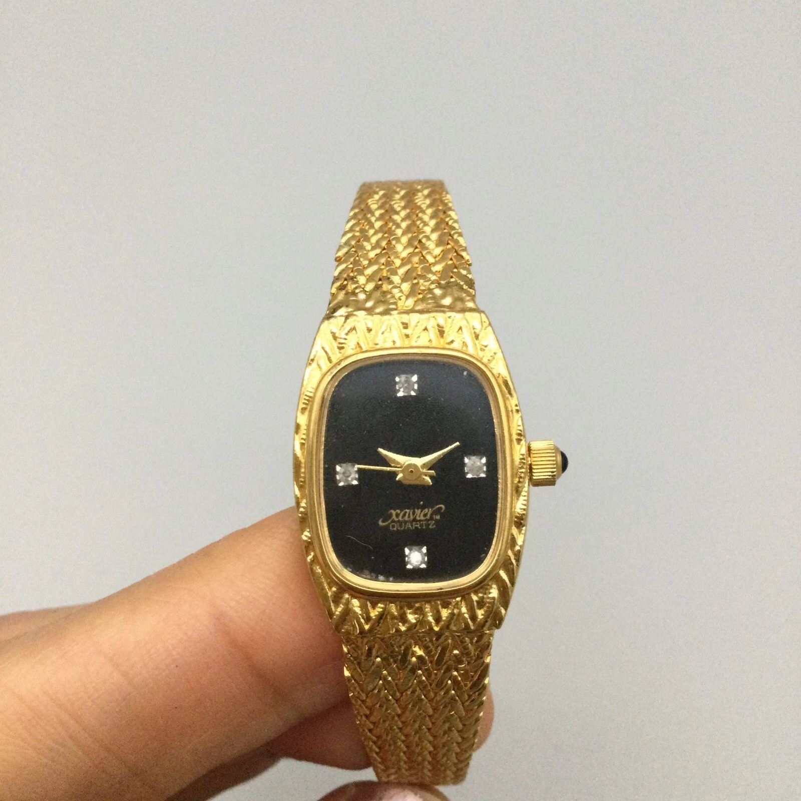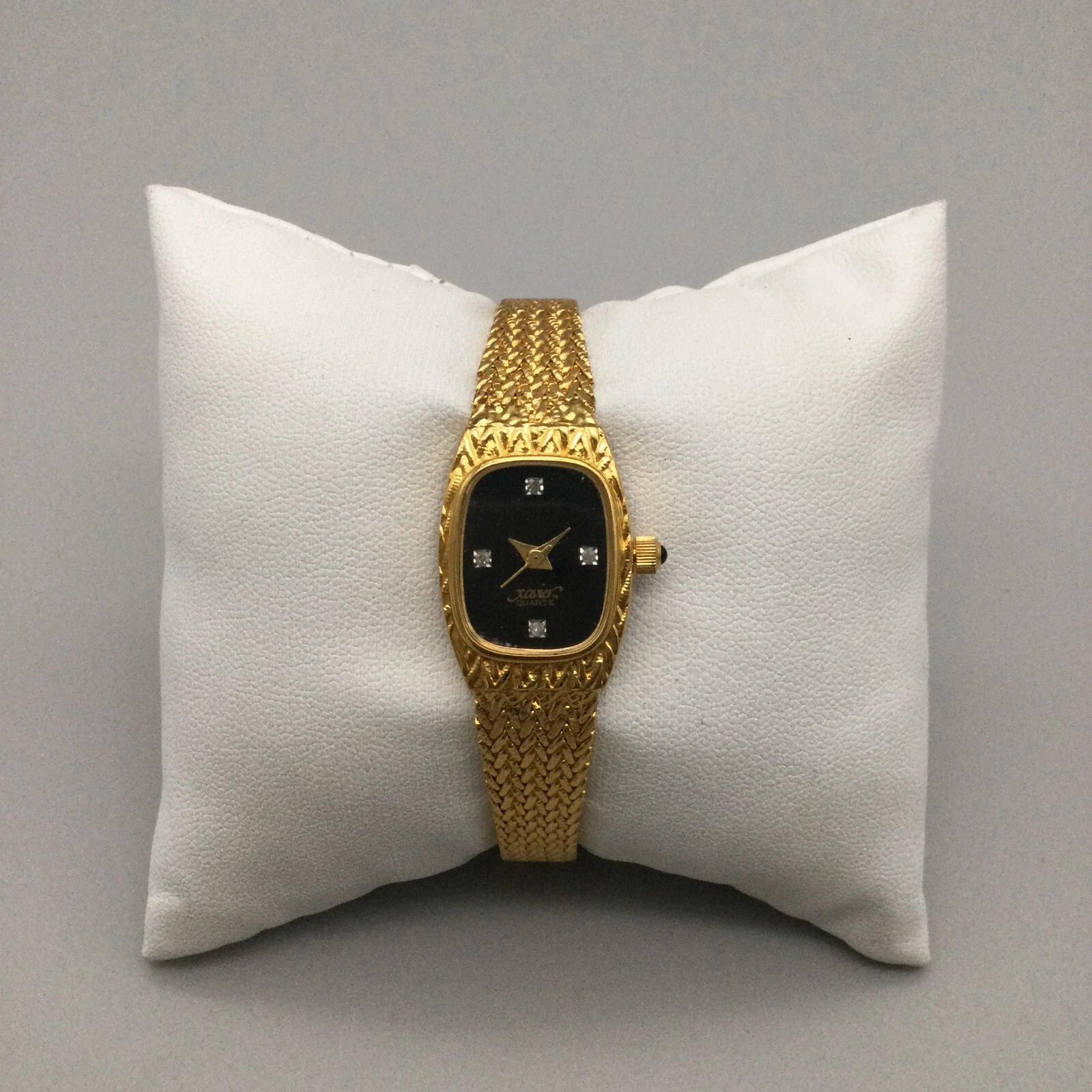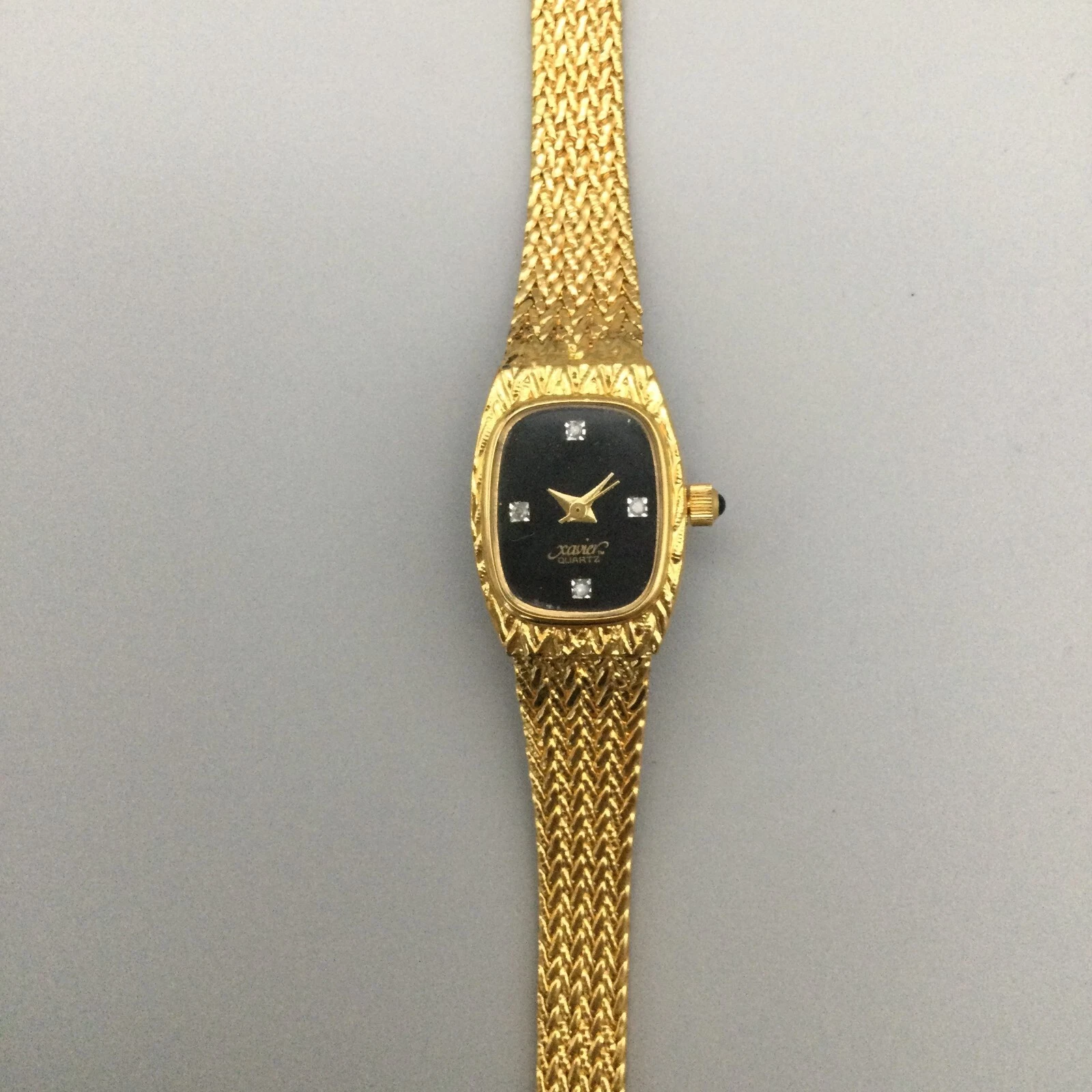Xavier Watch Women 18mm Gold Tone Black Dial Woven Textured Band New Battery 6"