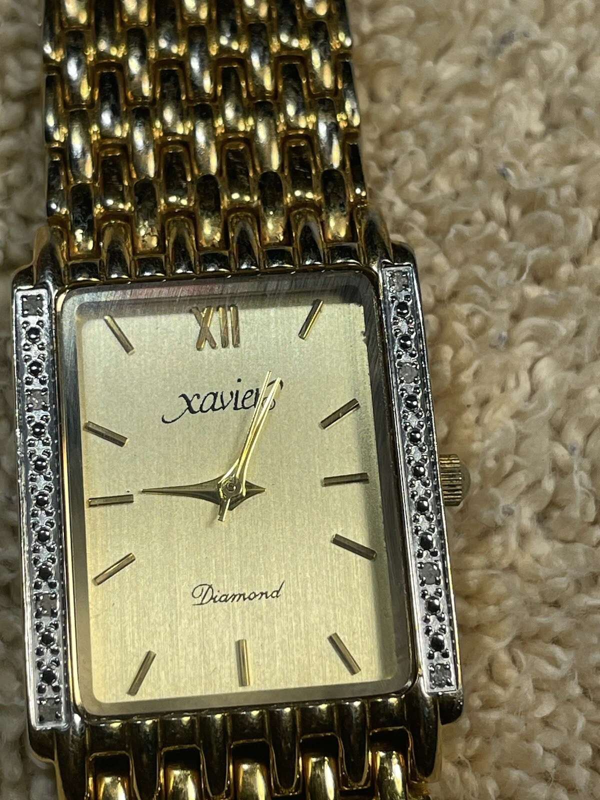 Vintage Xavier Diamond Quartz Men's Watch Masterpiece Gold Tone -Fresh Battery