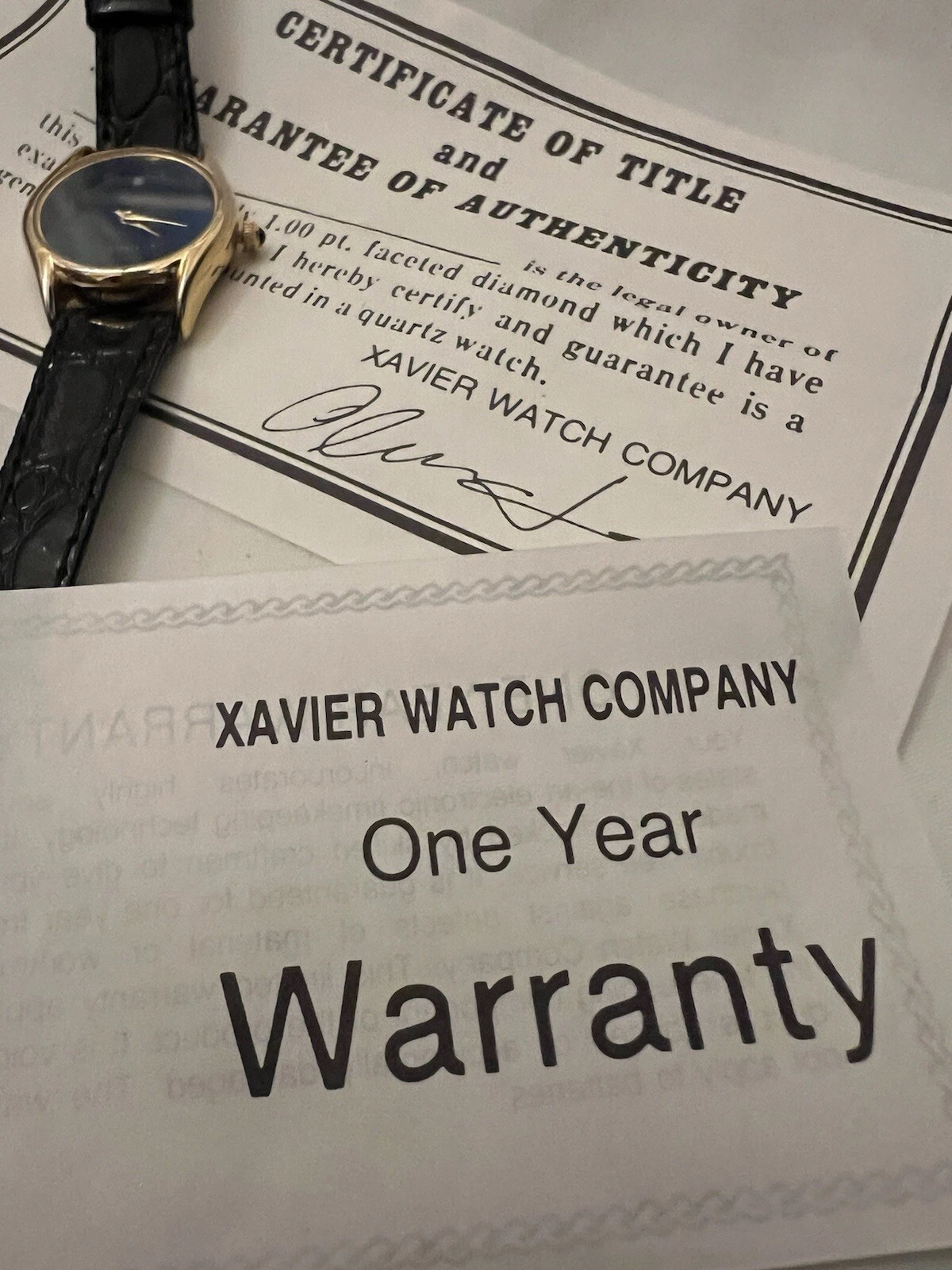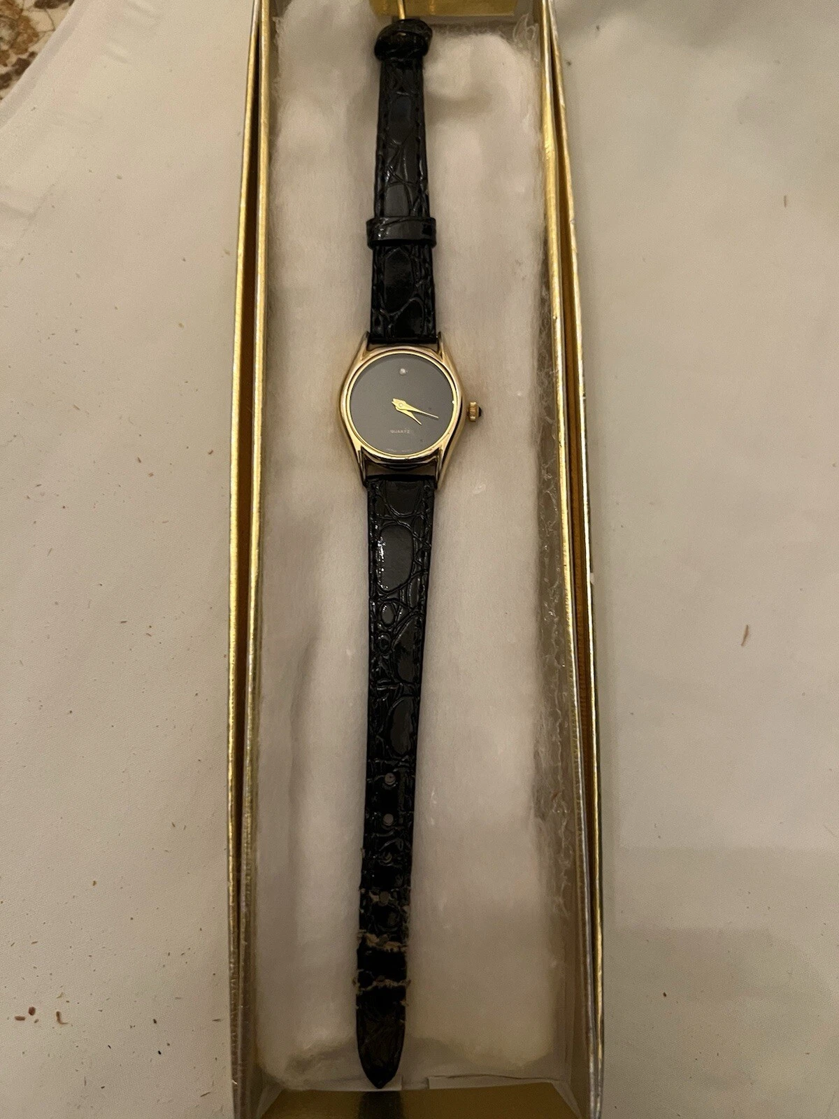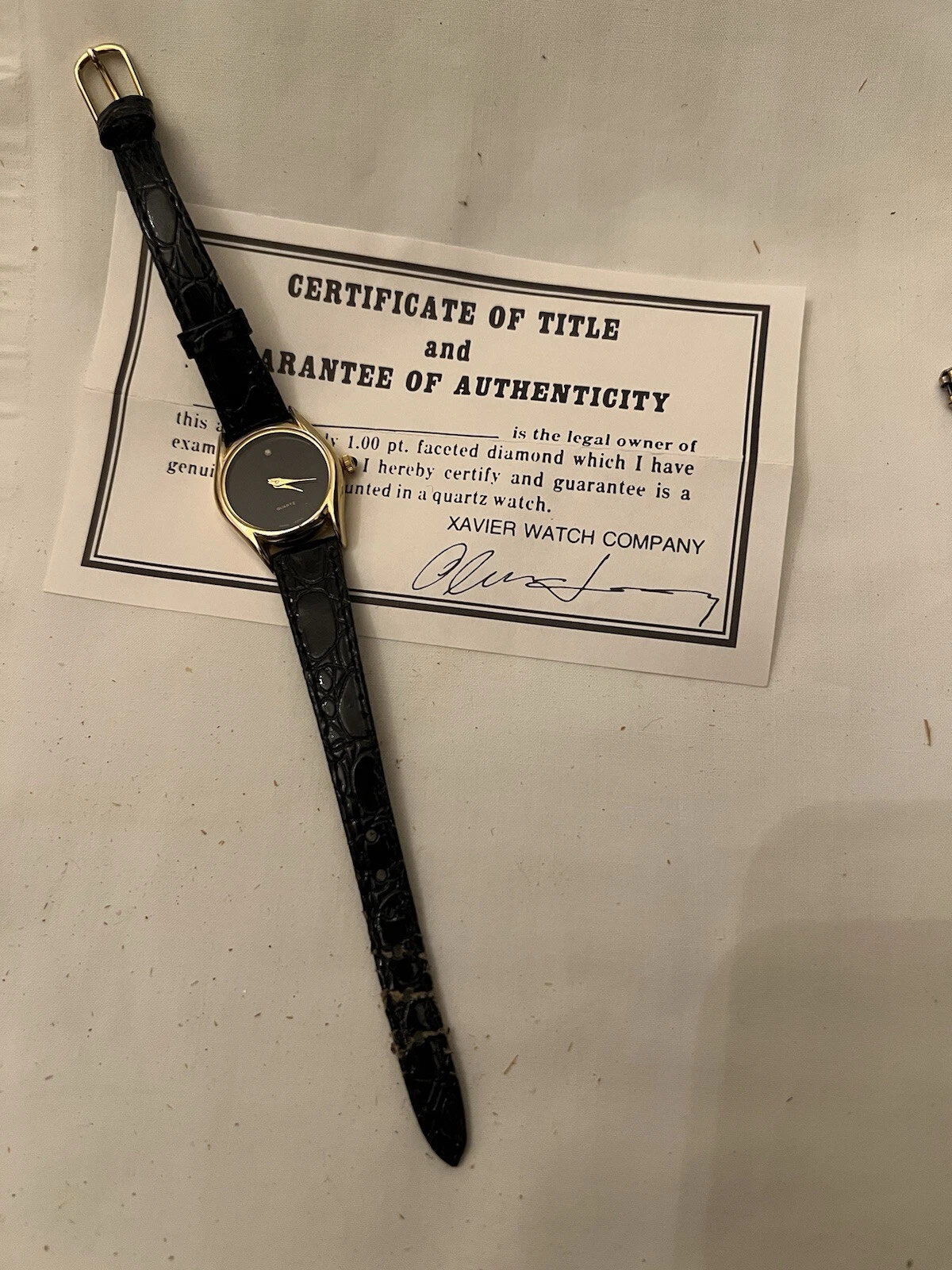 Vintage Quartz Watch Black Dial Diamond Gold Xavier Co New In Box Certificate