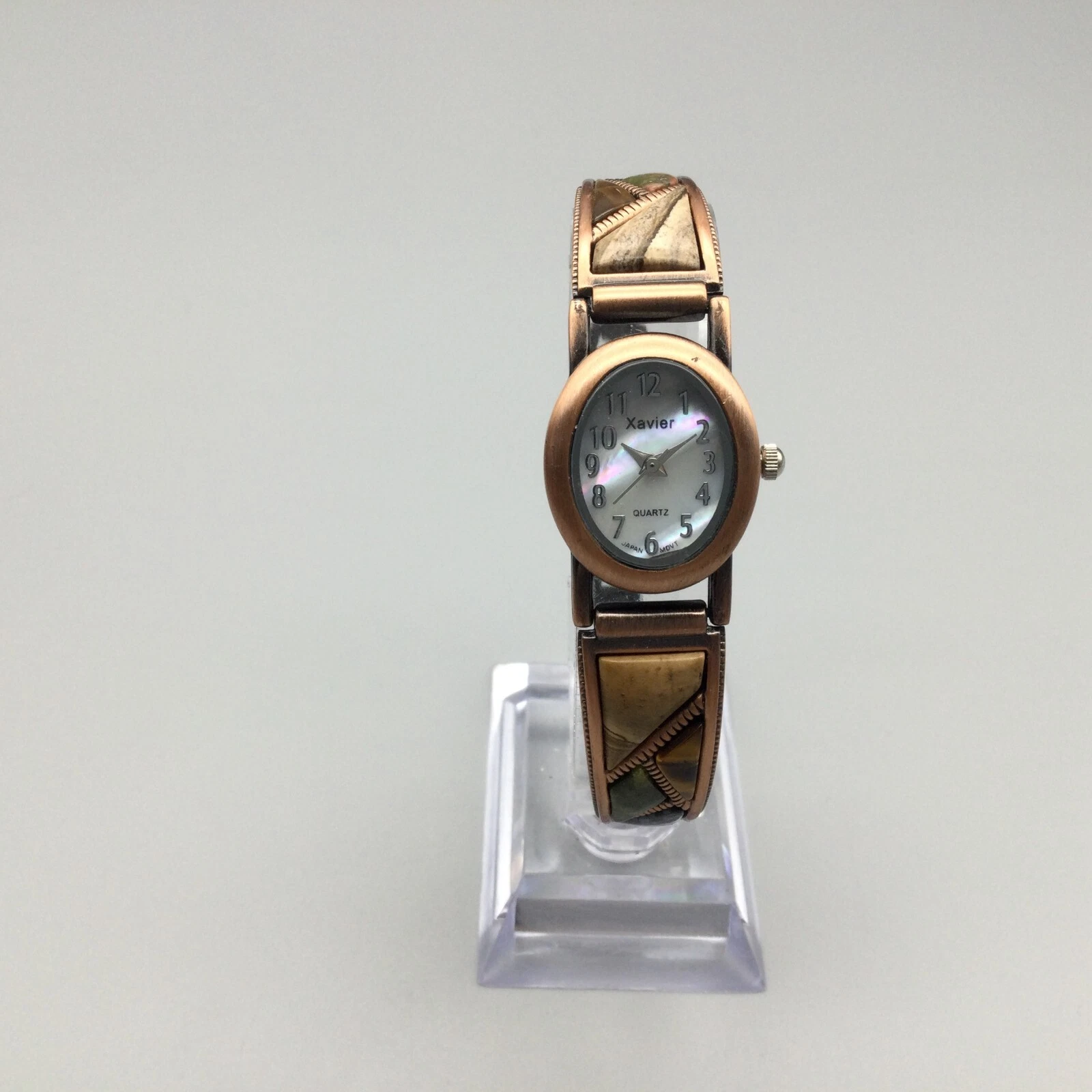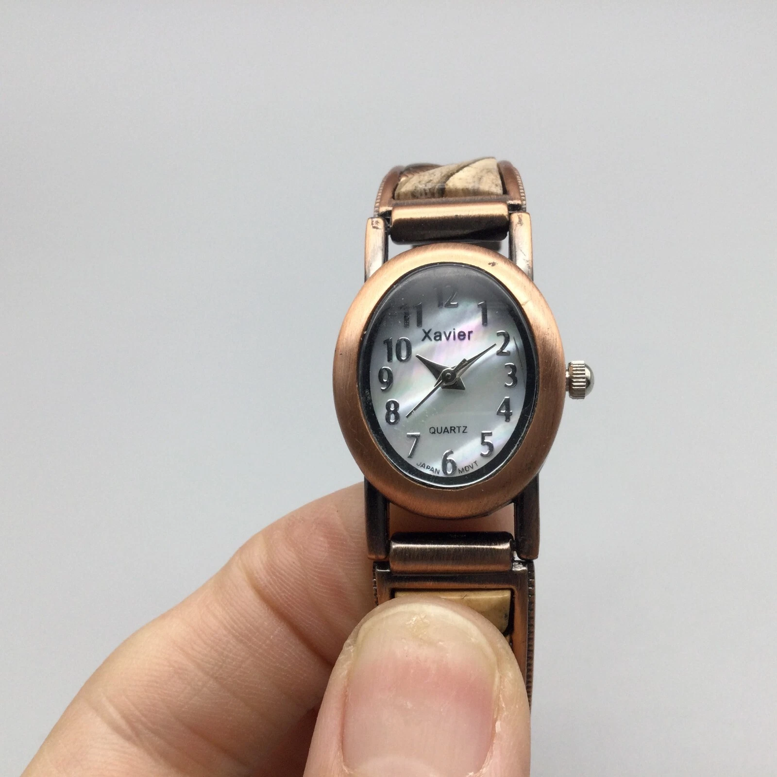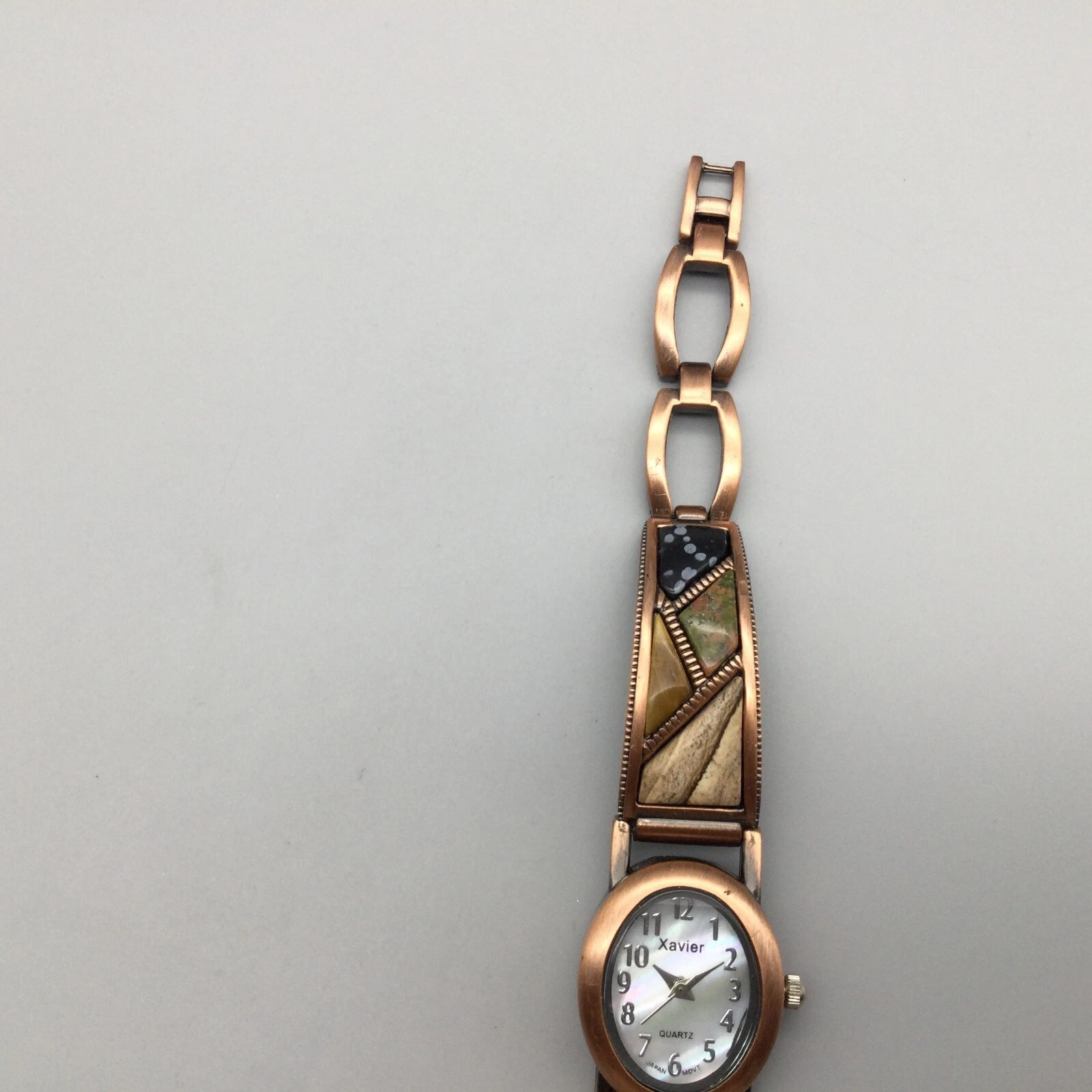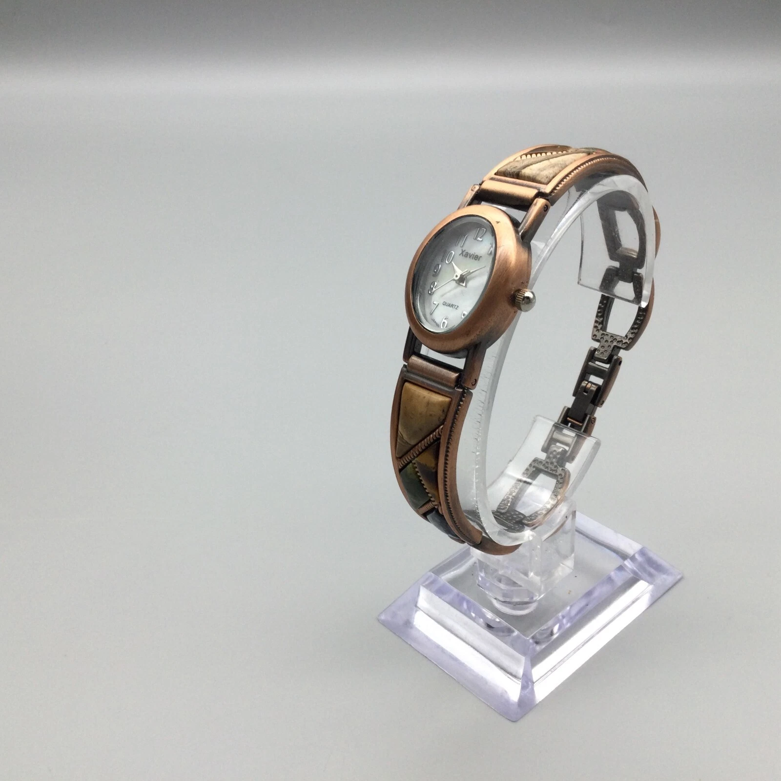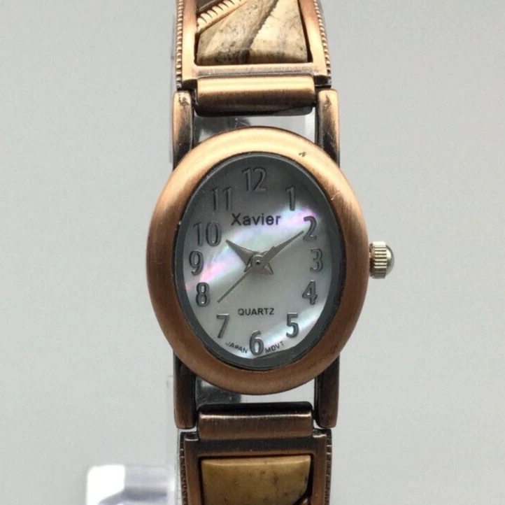 Xavier Watch Women 20mm Bronze Tone MOP Oval Stone Inlay Band New Battery 7"